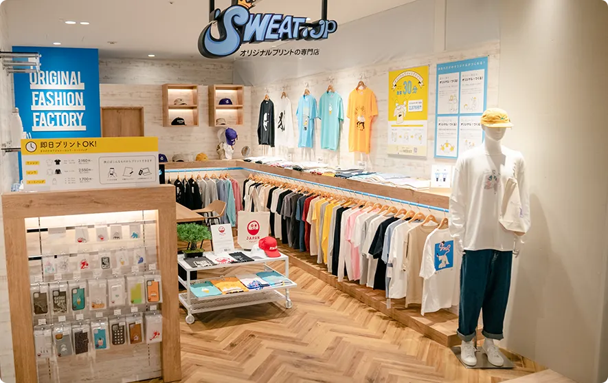 オリジナルプリント業界はネットだけで注文を処理している会社が多く存在しますが、SWEAT.jpでは「既製品とは違いオリジナルプリントは選択肢が多く、お客さまの問い合わせ窓口は必要」という考えをもとに全国17店舗、20拠点でオリジナルプリントの相談を受け付けています。