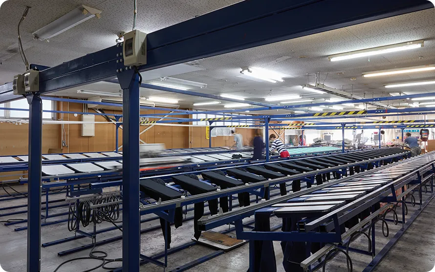 日本の物流の中心である岐阜流通センターに自社プリント工場があります。 それは法人案件に必要な「スピード」と「品質」を両立させるため。