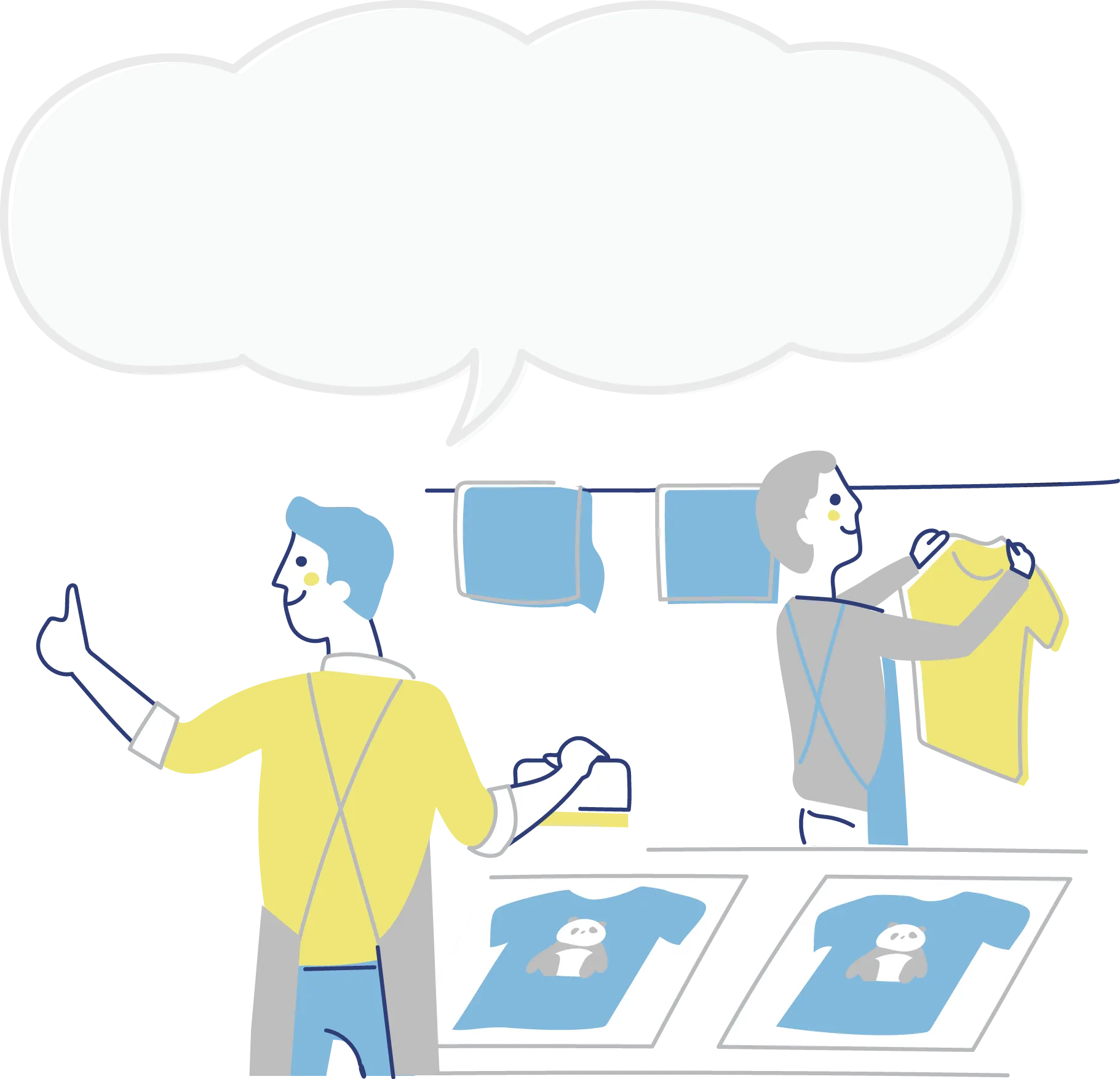 ボディの品質から加工技術、海外での生産事情や物流に至るまでオリジナルプリントに関するあらゆることの疑問にお答えできますので、法人さまの現状の分析から課題の解決までお気軽にご相談ください。