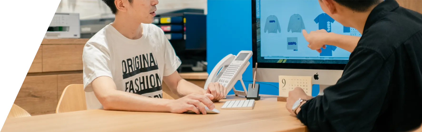 ビジネスで通用する高品質を追求するために、担当からの最適な加工のご提案はもちろん、デザインをより完成度高くプリントできるよう現場でも妥協のない取り組みをしています。