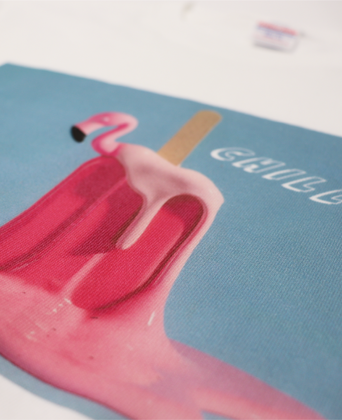 フラミンゴとアイスが溶け合った魅力的なデザインです。