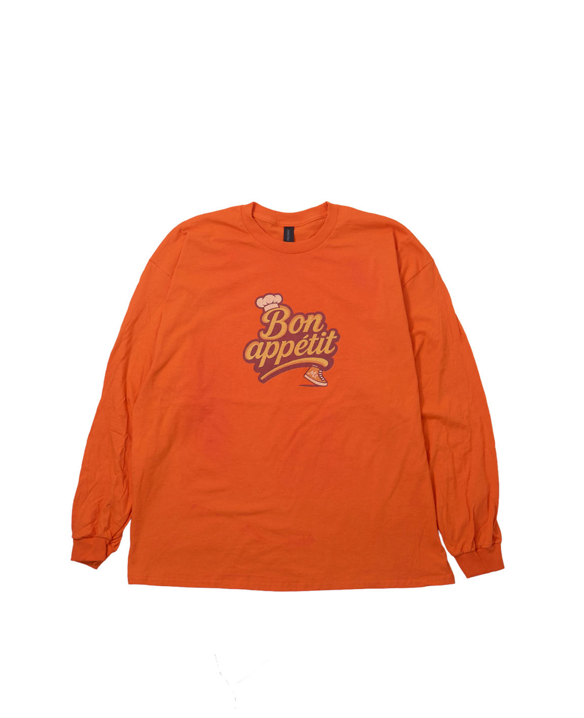 白いロンTにワンポイントのインクジェットプリント。