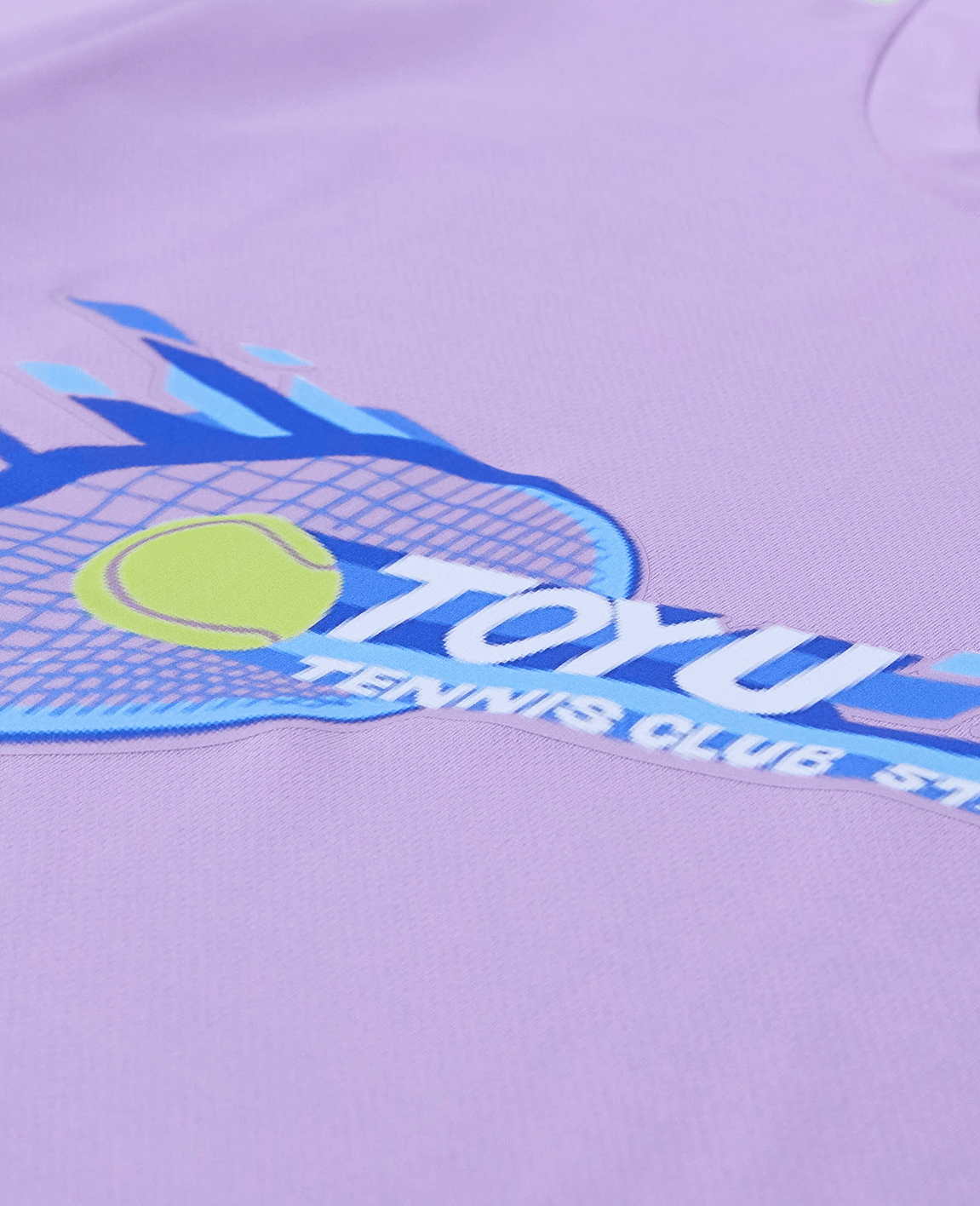 イラストの立体感が目を引くテニスクラブのユニフォームシャツをお作りいただきました。