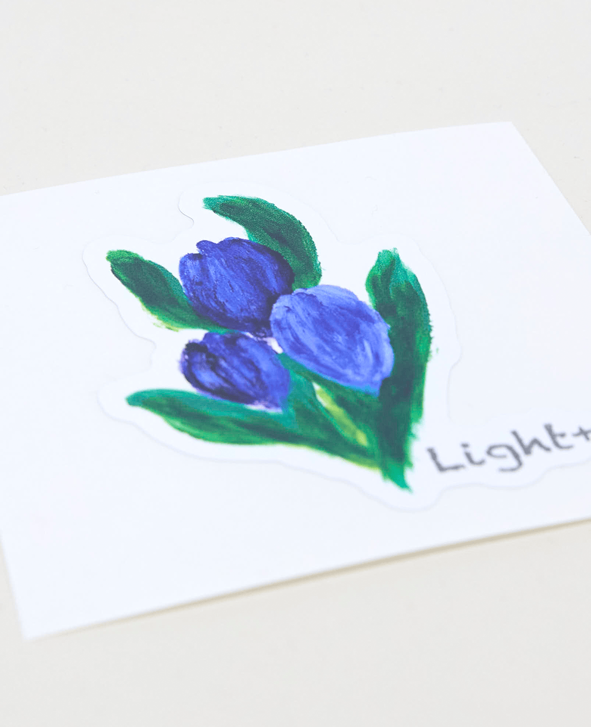 鮮やかなブルーが目を惹くお花のイラストでステッカーを作成いただきました。