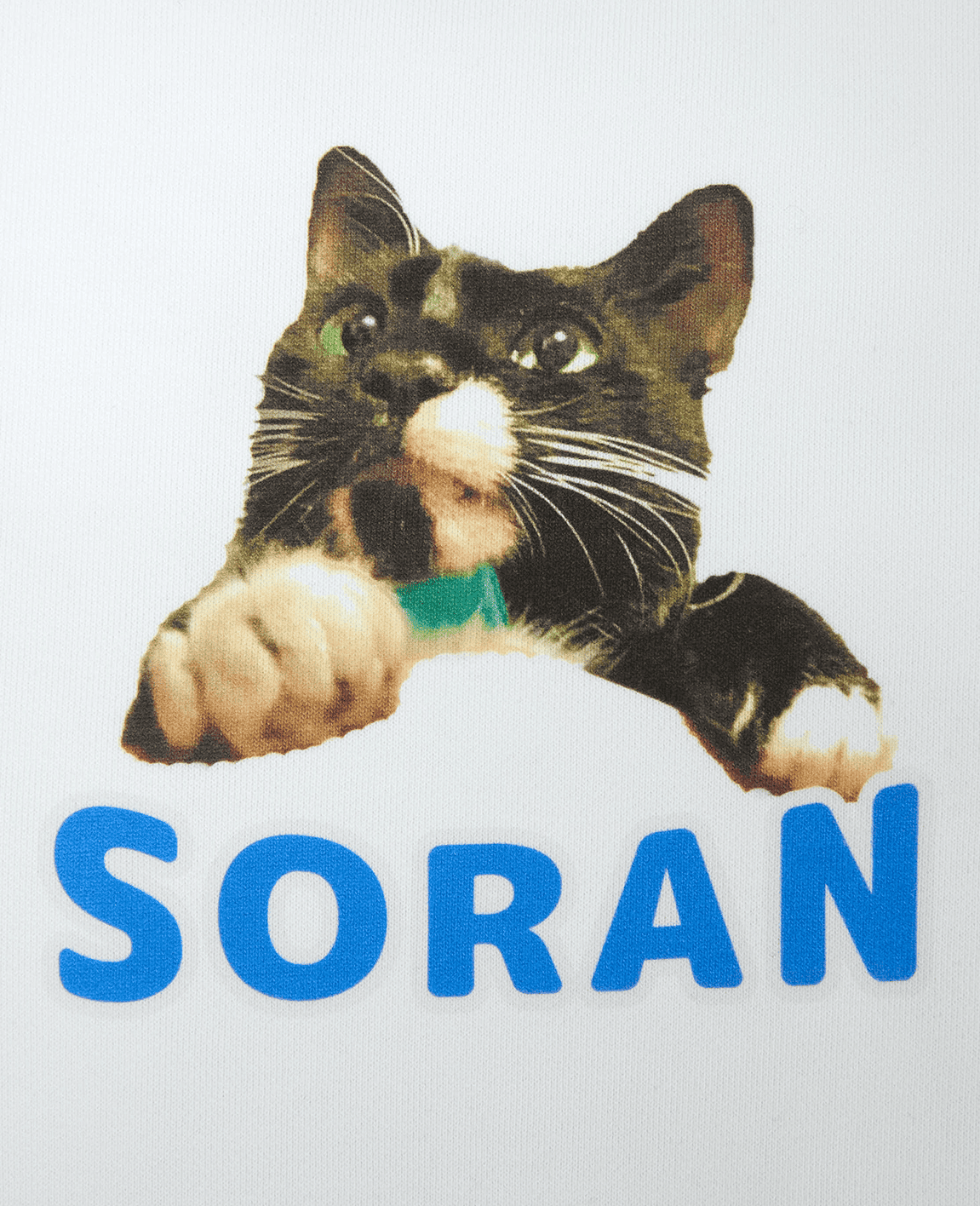シロの生地に猫ちゃんと青色の文字が映えておしゃれに仕上がりました。