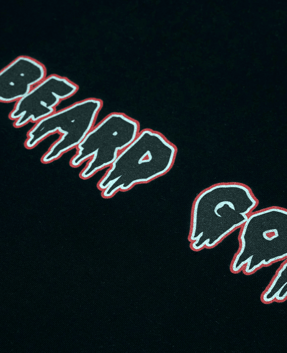 フロントには「BEARD GOLF」のロゴを中央に配置し、滴るようなデザインのフォントでインパクトのある仕上がりになっています。ブラックのボディにレッド×ホワイトの配色が映え、シンプルながらもしっかりと存在感を感じられるデザインです。インクジェットプリントでは細かい部分の加工も綺麗に再現できるのが魅力の1つです。