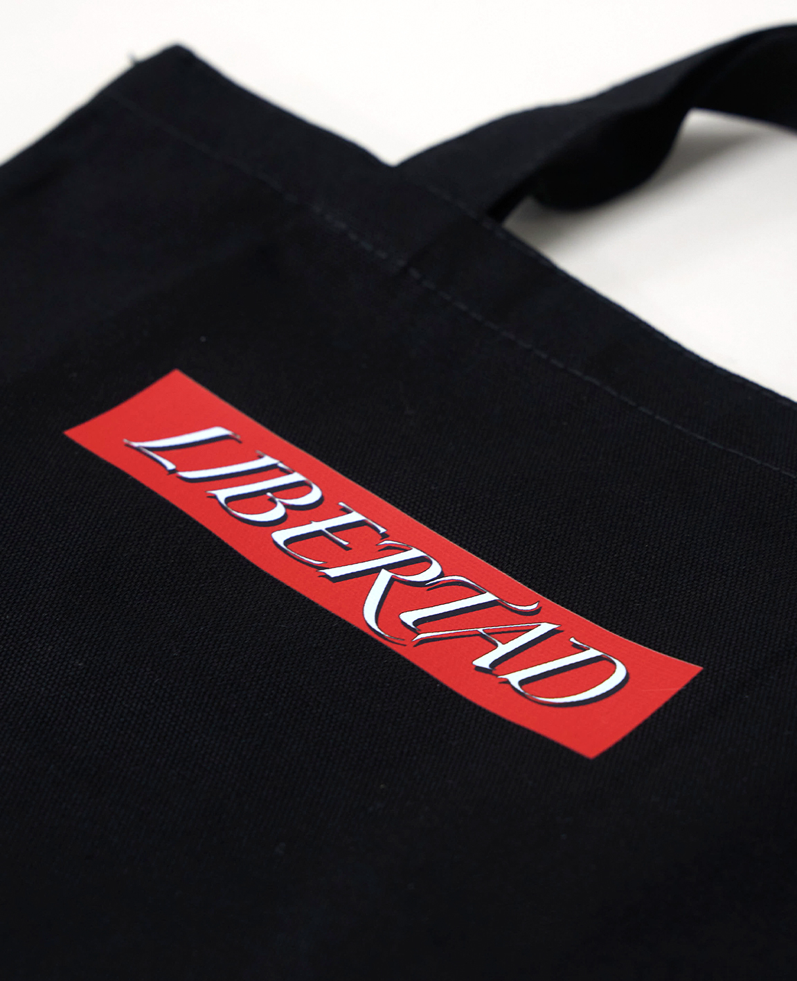 黒いカバンに合う赤色がテーマのロゴがよく映えています。当店ではアパレル以外にもデザインを生かせる商品が沢山ございます。ぜひノベルティなどにいかがでしょうか。