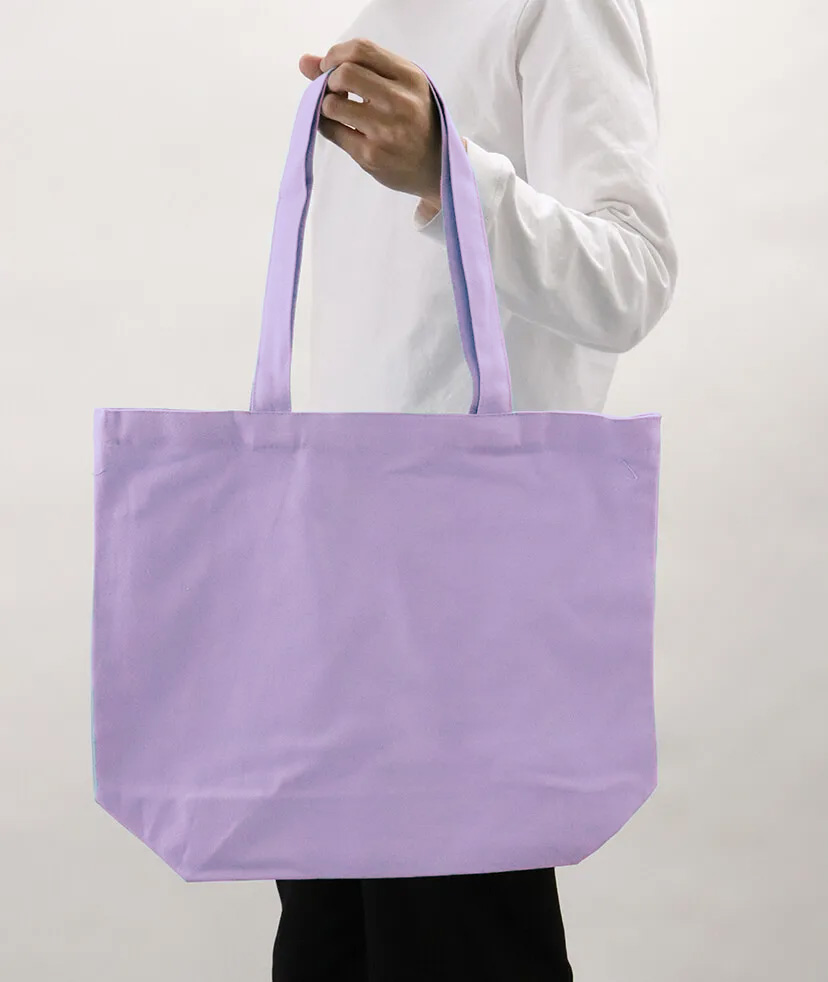 A3サイズも余裕を持って収容出来るコットン生地のトートバッグです。イベントやアウトドアなど、レジャーにも使えるサイズと広めのマチが魅力的です。同じ商品のナチュラルカラーもございます。