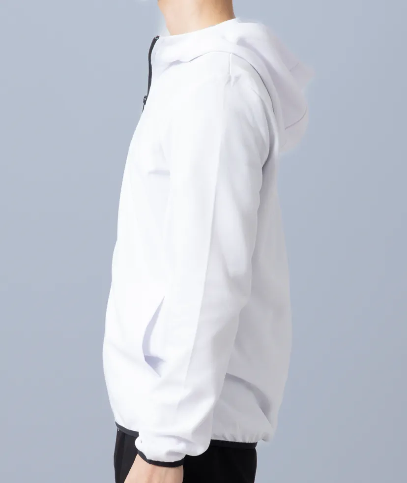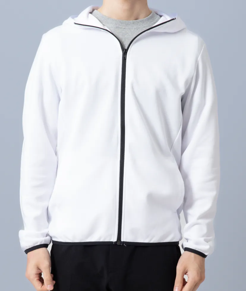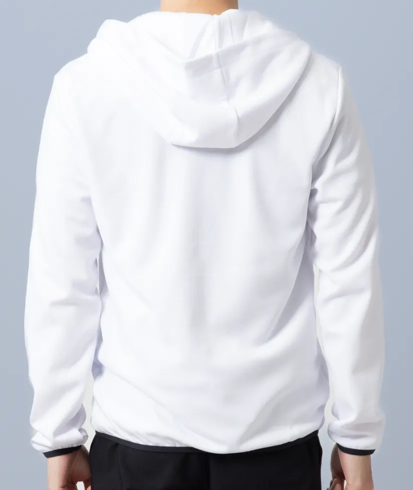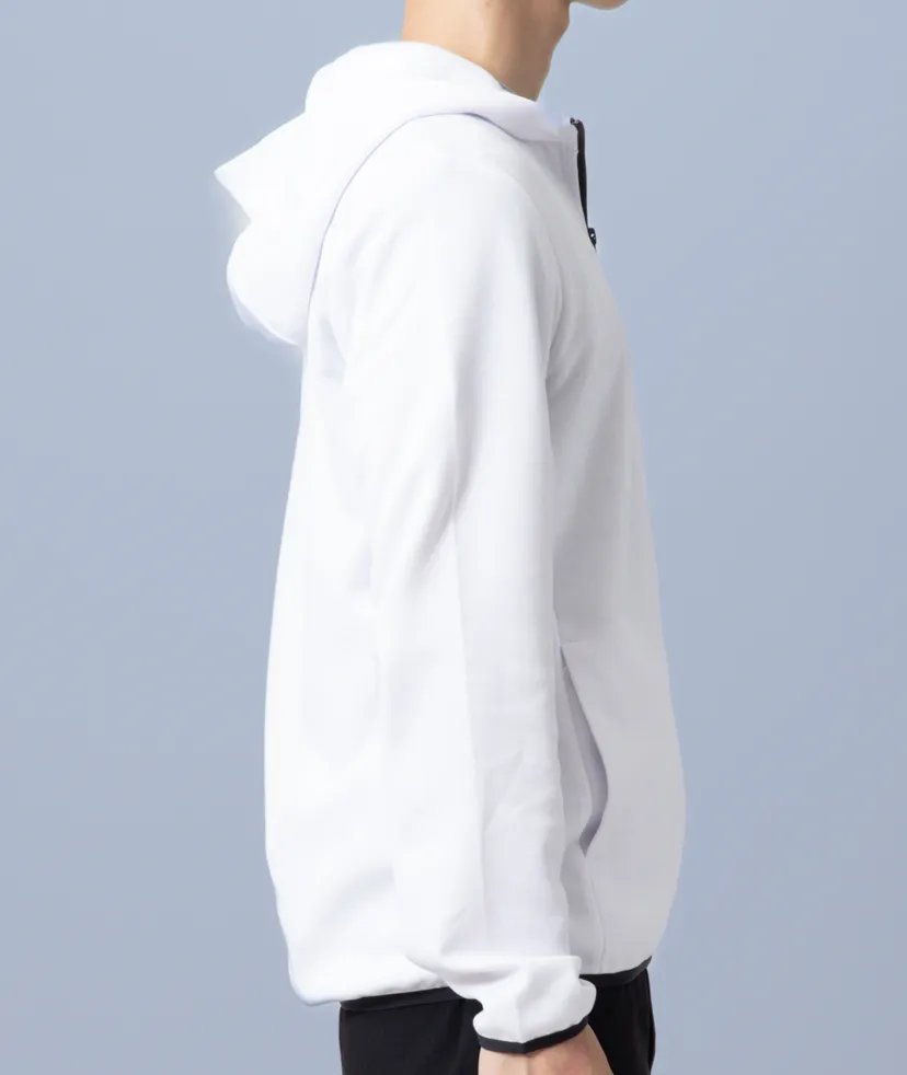 スポーツにもタウンユースにも快適な高機能ドライスウェットジップパーカー。袖裾のパイピングとジップはブラックの切替えになっており、シンプルなデザインながらシャープな印象を与えるアクセントになっています。