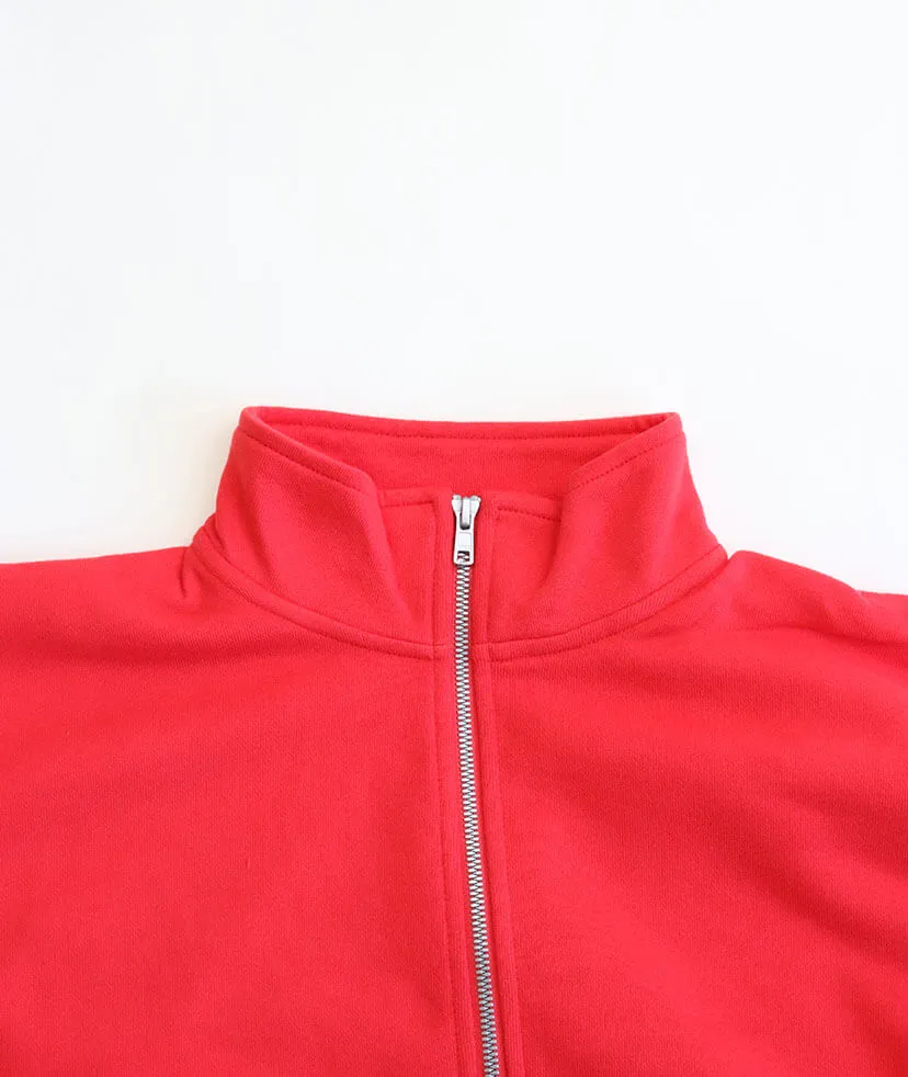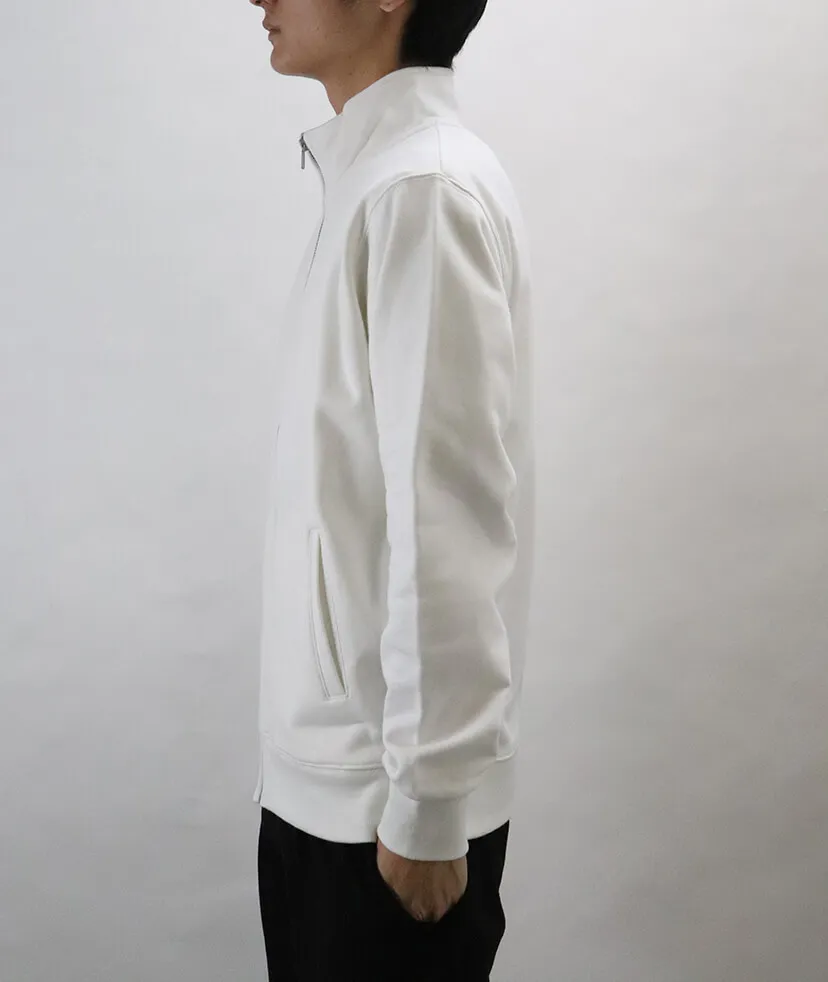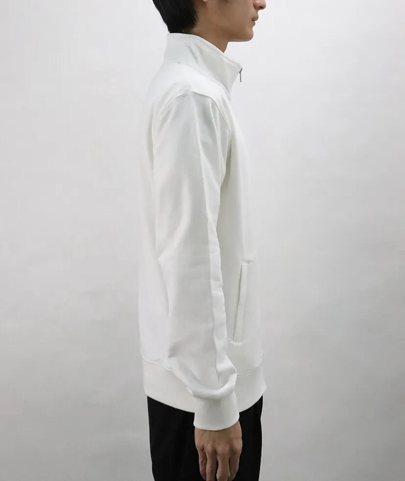 スタイリッシュなスタンドカラーのスウェットジップジャケット。 厚手で綿100%裏毛仕様のしっかりとした着心地。 やわらかな素材でゆったり着られるジャケットなので汎用性が高いアイテムです。