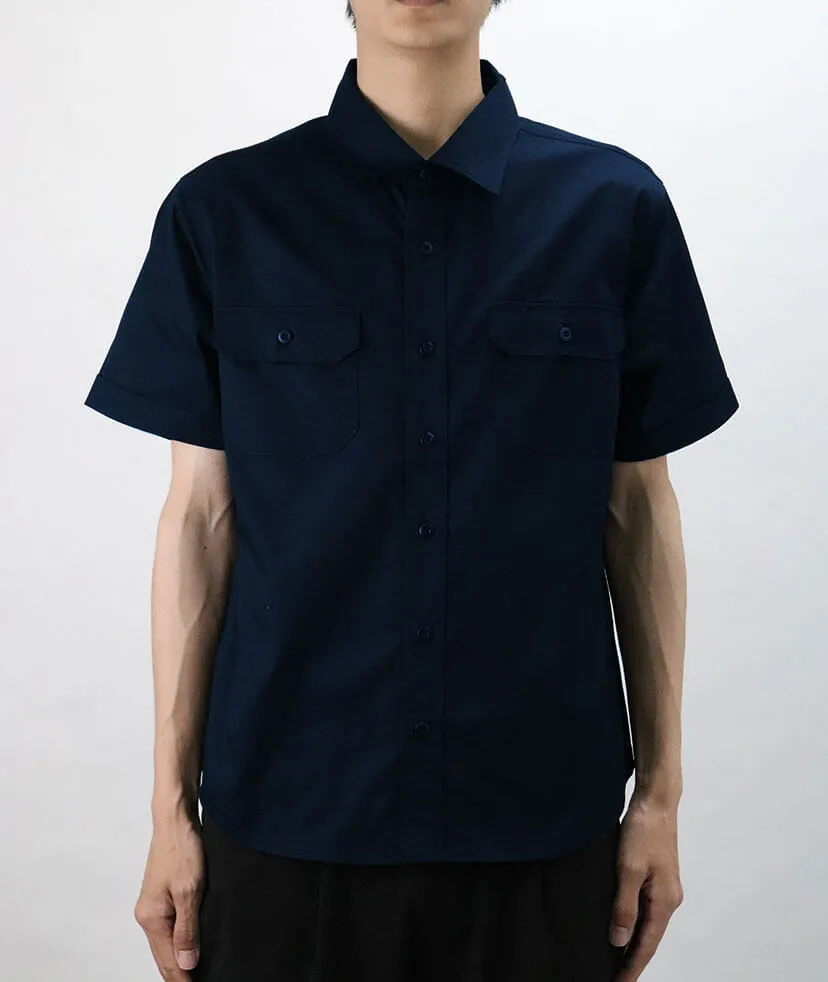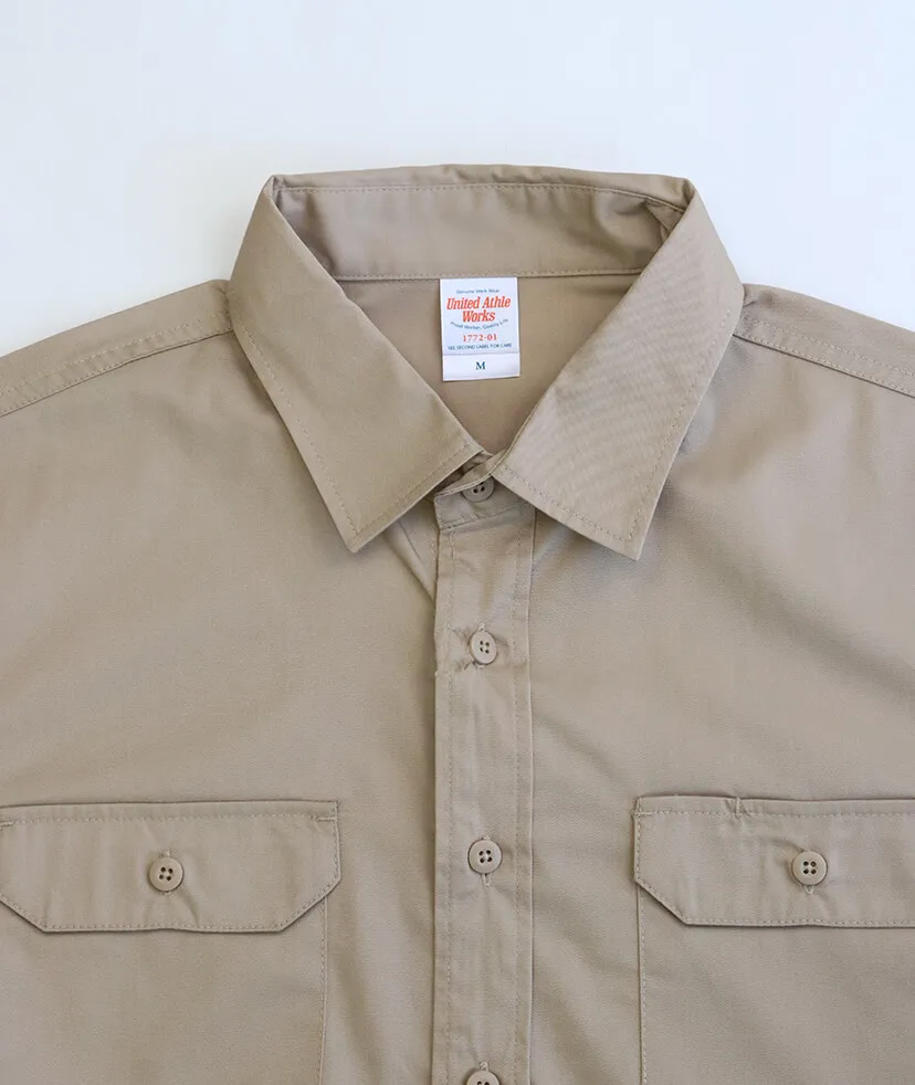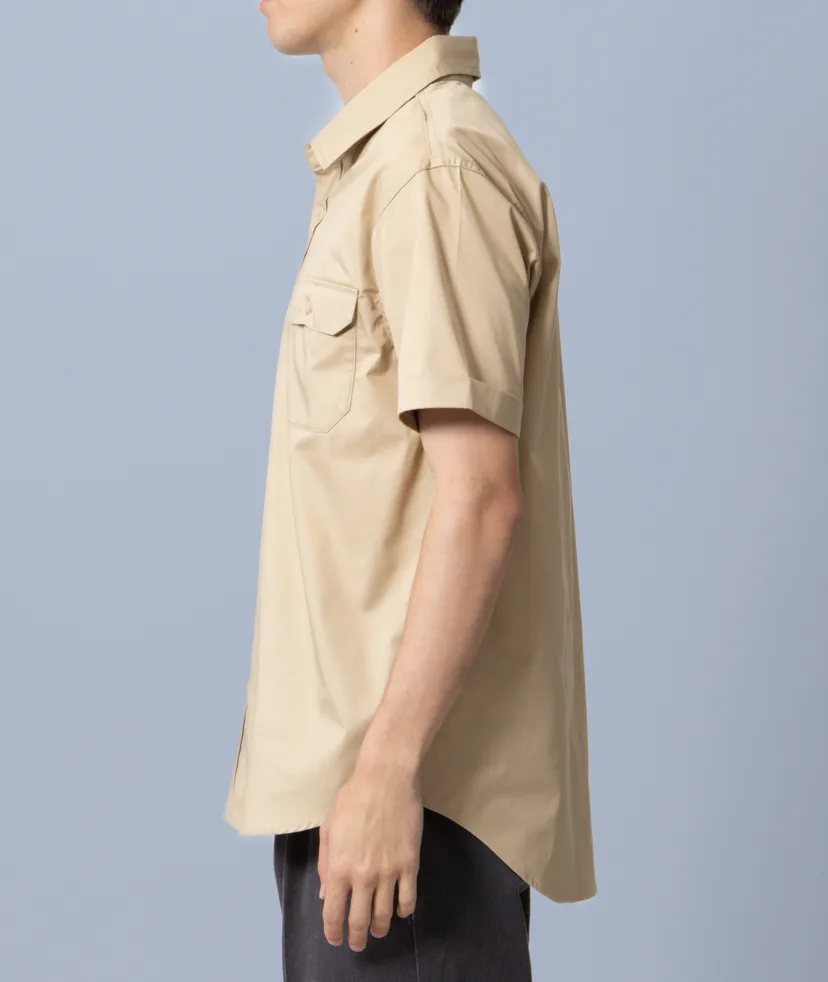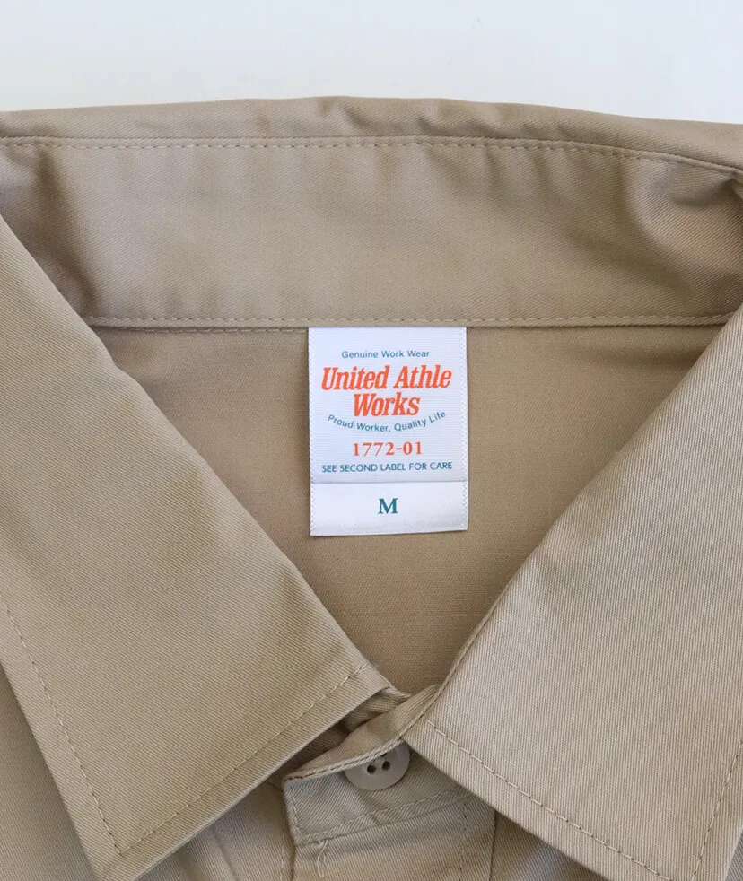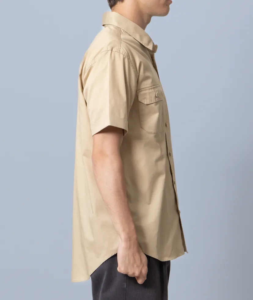 2本針のチェーンステッチ、両胸のペン差し付きフラップポケットなど、シンプルでありながら、細部にあしらわれた工夫とデイリーユースに最適な性能が特徴。 現場でも事務でも通用する機能性とすっきりしたデザインでワーク関係の人気を持った1枚です。