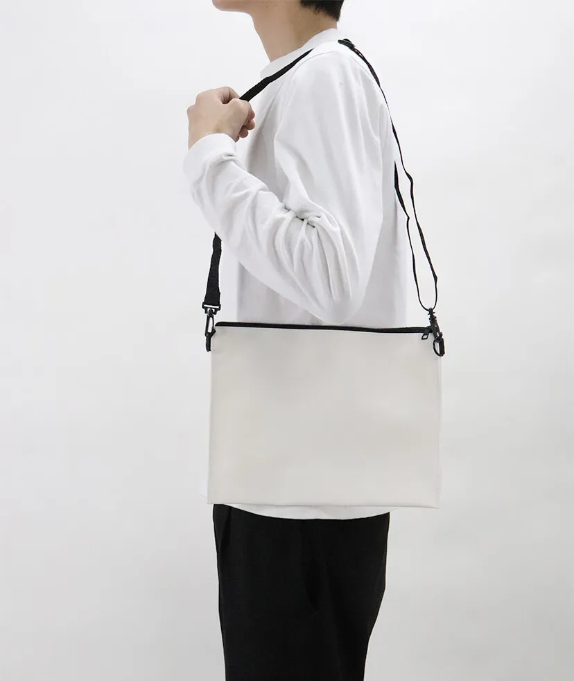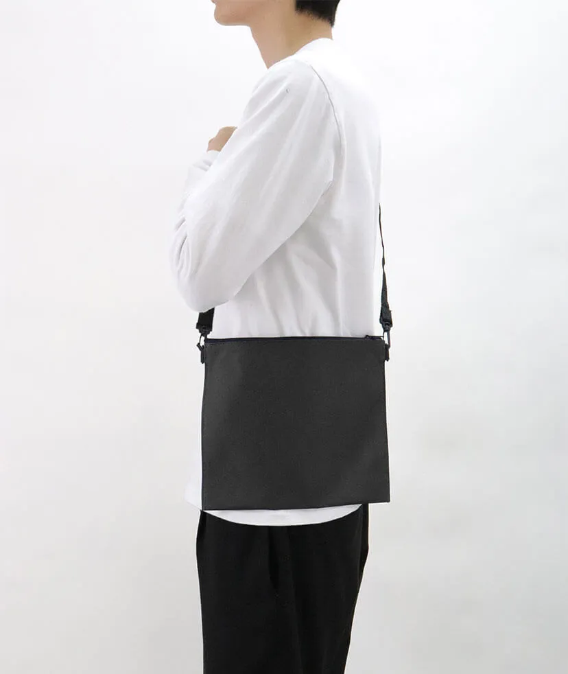 小さいサイズで邪魔にならないサコッシュ。シンプルなデザインながらも両面に機能の違うポケット付でとっても便利。スマホと財布といった必要最低限のものを持って身軽にお出かけできます。ストラップの部分を縛って使うなど長さの調整も可能です。