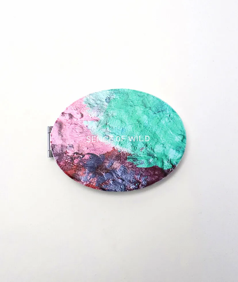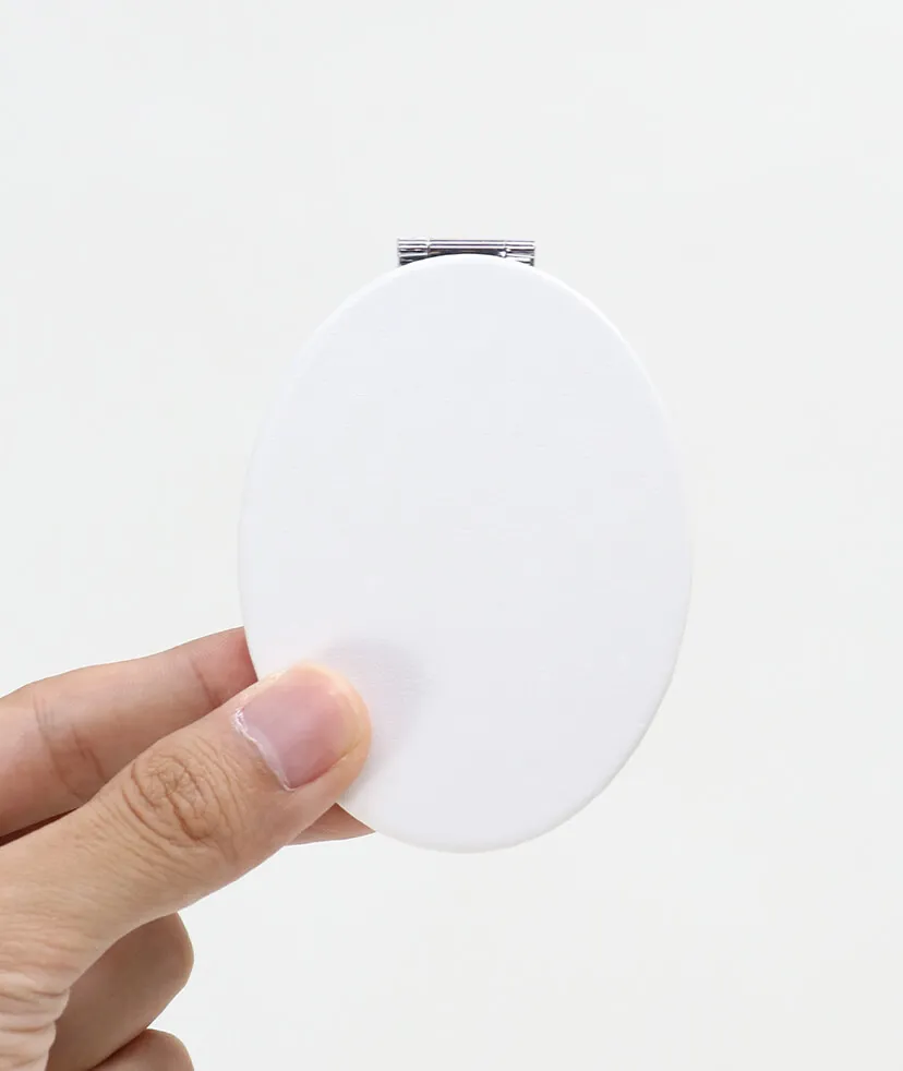 【1個からOK】持ち運びにも便利な小さめサイズの手鏡。イベントなどのノベルティとして人気です。楕円の表面に全面フルカラープリントが可能なので、ブランドやサービスのロゴをプリントしたら素敵なグッズが仕上がります。