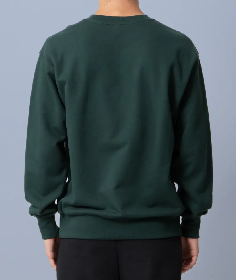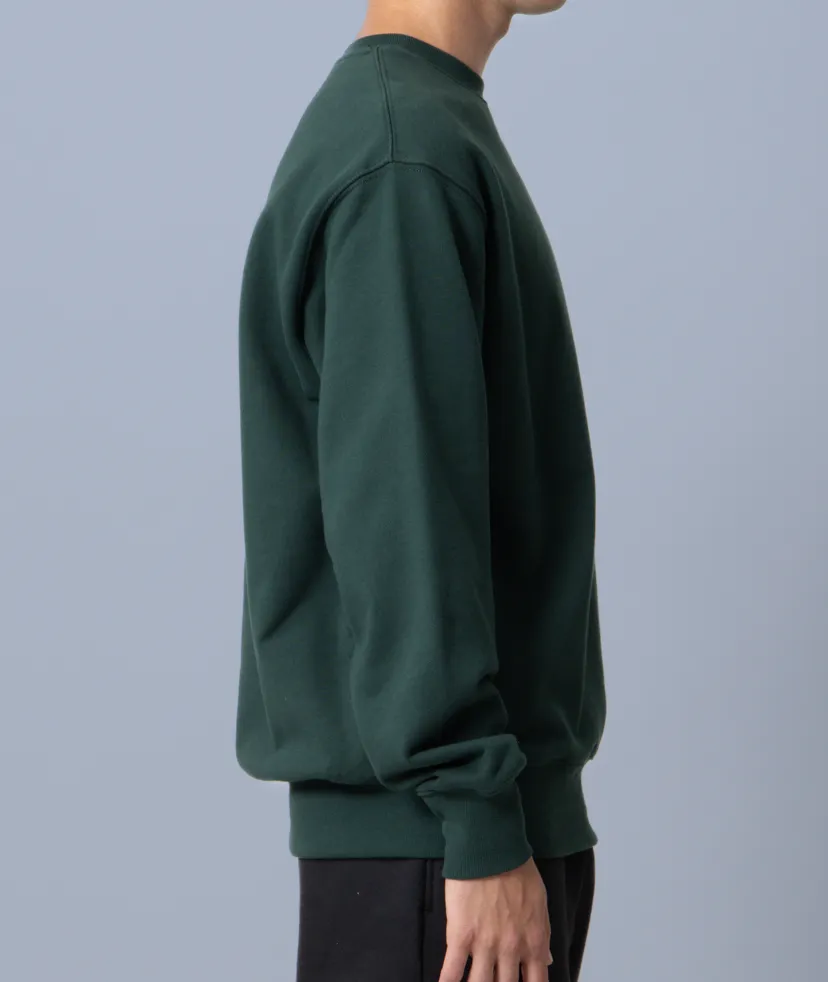 着回しができる、ややざっくりなシルエットが特徴です。生地感はふっくら、裏糸のパイルは通常よりも太い糸を編み込み重厚感ある生地でどこかクラシックな佇まいも◎。 アームホールや袖口など、力が加わる部分のステッチワークは太番手の縫製糸と粗めの運針数でダブルステッチにすることで、堅牢さと立体感を実現しました。