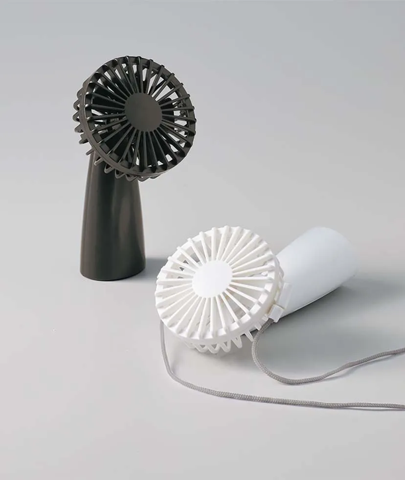 使用シーンでスタンドファン、首掛けファン、ハンディファンと3WAYに使い分けのできる乾電池タイプのファン。ヘッド部分は上下に約90度の調節が可能。卓上でお使いいただく場合も好みの角度でお使いいただけます。付属のネックストラップは安全パーツ付きで、合わせてお使いいただければ首掛けファンとしてもおすすめ。夏に向けたキャンペーンの販促品や音楽フェスなどの物販品としてもおすすめです。