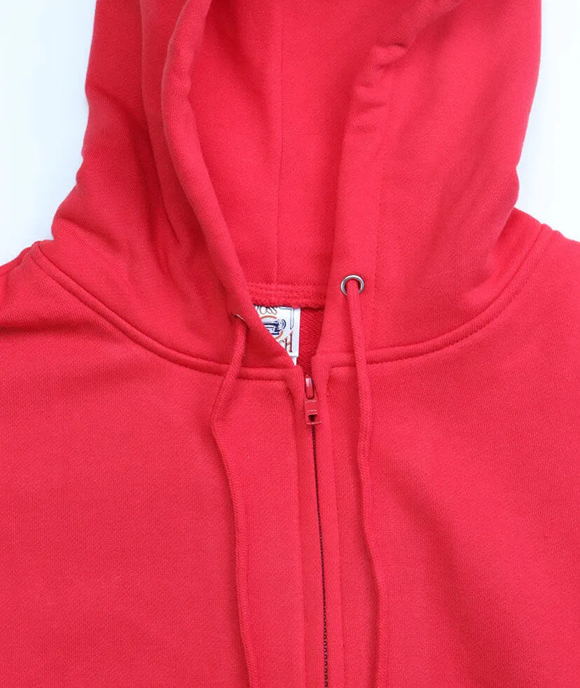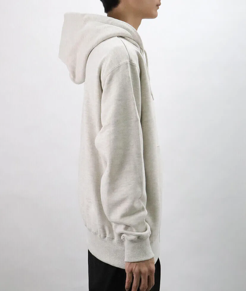 しっかりした厚みを感じられる10oz裏毛のジップパーカー。縫製・生地が丈夫なので、繰り返し洗濯しても型くずれしにくい、タフな一品です。シルエットはふっくらしていますので、オーバーサイズ気味に着こなすスタイルもおすすめです。