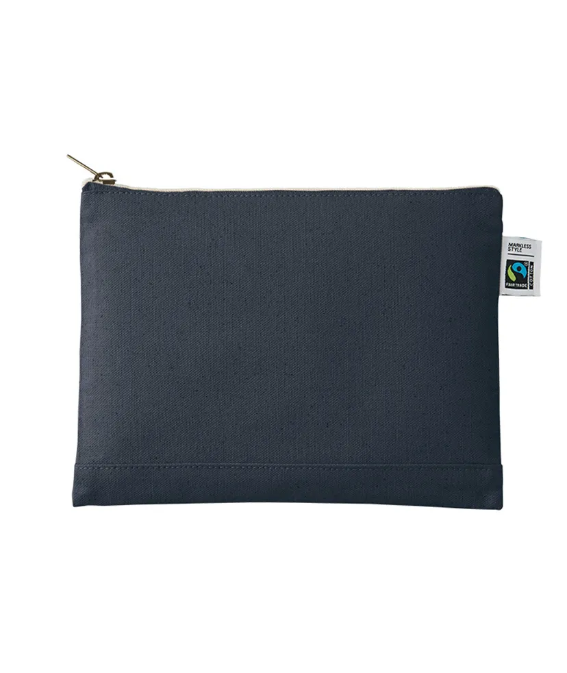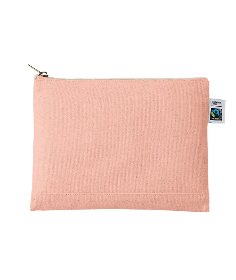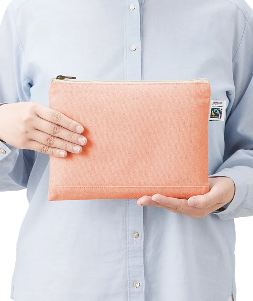 フェアトレードコットンを使用したキャンバスポーチです。10オンスの厚みがあるので中身が透けることもなく、丈夫な生地感になります。ステーショナリーや、スマホギア、メイク道具など、普段使いしやすいサイズ感です。サイズはSサイズ・Mサイズ・Lサイズの3サイズ展開しており、ご利用用途によって使い分けがしやすい商品です。国際フェアトレード認証ラベル付きのアイテムとなっており、SDGsやサスティナブルへの取り組みで企業価値を高められます。染色工場もフェアトレード認定工場で生産されており、染料は第三者認証を受けた製造工場で生産しているものを使用しております。▼フェアトレードとは?フェアトレードとは発展途上国の原料や製品を適正な価格で購入することで、そのような国の人々の生活改善や自立を支援する活動です。当製品に使用されているコットンもフェアトレード認証生産者から基準に従って調達された認証コットンです。▼国際フェアトレード認証コットンラベルとは?国際フェアトレード認証ラベルは、その原料が生産されてから、輸出入、加工、製造工程を経て「国際フェアトレード認証製品」として完成品となるまでの各工程で、国際フェアトレードラベル機構(Fairtrade International)が定めた国際フェアトレード基準が守られていることを証明するラベルです。つまり、この商品はフェアトレードだという証明書や目印のような役割をしています。フェアトレード・ラベル・ジャパン公式サイト