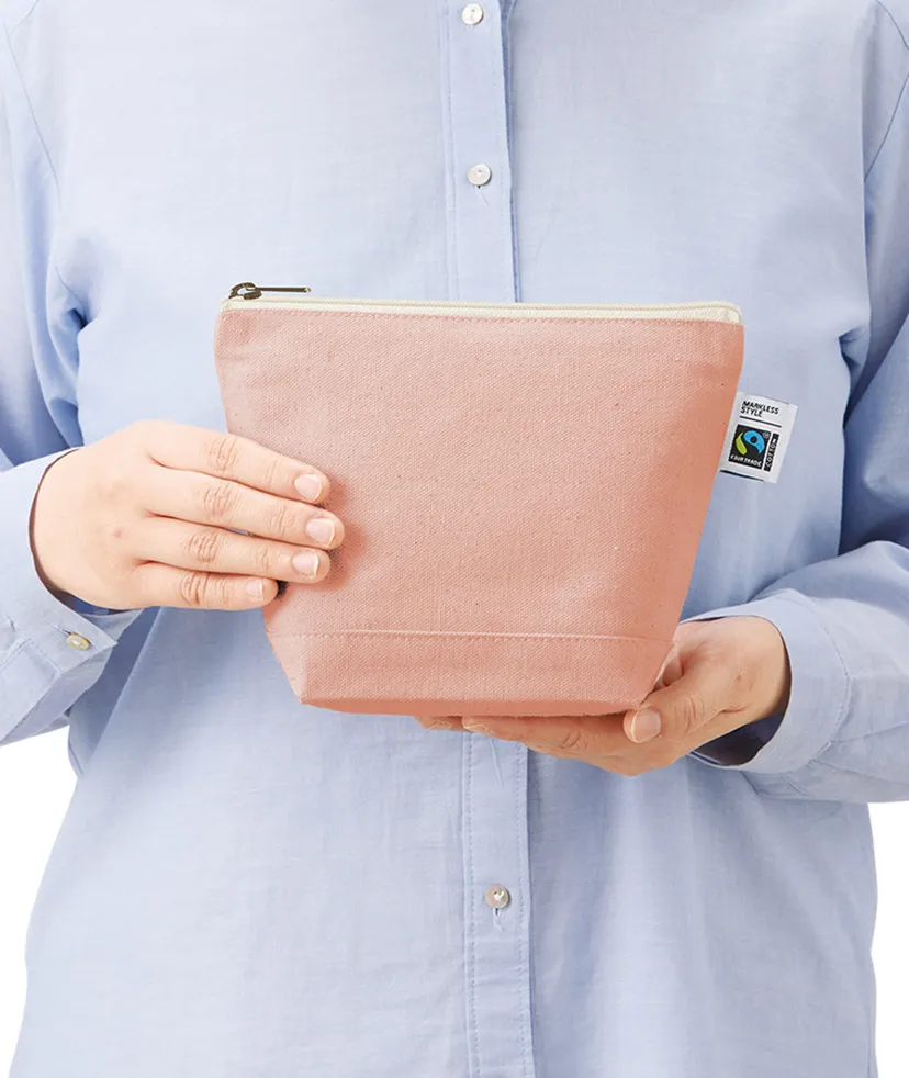 フェアトレードコットンを使用したキャンバスポーチです。人気の舟形形状でマチもあるのでしっかり収納することができます。Sサイズはハンドクリームやコスメ周りの商品を入れるのにおすすめです。サイズはSサイズ・Mサイズの2サイズ展開しており、ご利用用途によって使い分けがしやすい商品です。国際フェアトレード認証ラベル付きのアイテムとなっており、SDGsやサスティナブルへの取り組みで企業価値を高められます。染色工場もフェアトレード認定工場で生産されており、染料は第三者認証を受けた製造工場で生産しているものを使用しております。▼フェアトレードとは?フェアトレードとは発展途上国の原料や製品を適正な価格で購入することで、そのような国の人々の生活改善や自立を支援する活動です。当製品に使用されているコットンもフェアトレード認証生産者から基準に従って調達された認証コットンです。▼国際フェアトレード認証コットンラベルとは?国際フェアトレード認証ラベルは、その原料が生産されてから、輸出入、加工、製造工程を経て「国際フェアトレード認証製品」として完成品となるまでの各工程で、国際フェアトレードラベル機構(Fairtrade International)が定めた国際フェアトレード基準が守られていることを証明するラベルです。つまり、この商品はフェアトレードだという証明書や目印のような役割をしています。フェアトレード・ラベル・ジャパン公式サイト