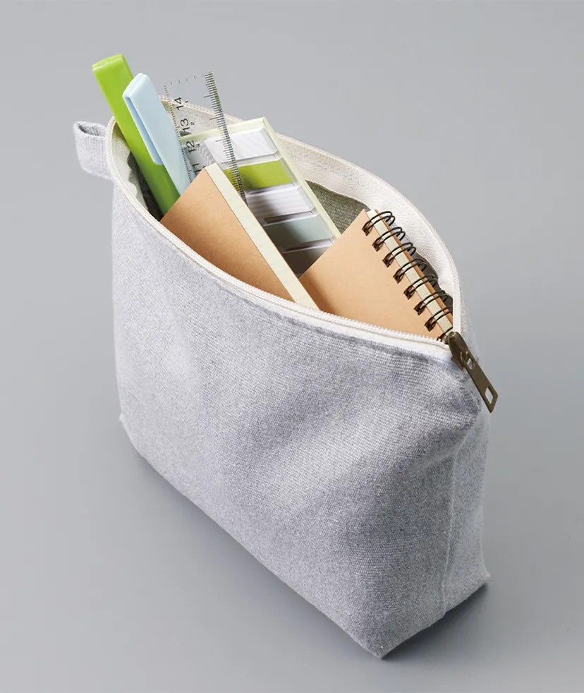 再生素材を使用した、普段使いしやすい舟形タイプのポーチです。サイズはSサイズ、Mサイズの2型展開でご使用用途に合わせ大きさをお選びいただけます。パソコンの充電器などのガジェット収納や、小旅行の小分けポーチなど幅広くお使いいただけます。単色印刷からフルカラー印刷まで対応。お好きなデザインでオリジナルグッズをおつくり頂けます。アパレルの購入品特典やオープンキャンパスのノベルティなどおすすめの商品です。▼シャンブリック素材とは廃棄予定だった生地の切れ端を再利用したエシカルな素材。経糸・緯糸の色を変えて織り上げています。先染めの糸を使用しているため、堅牢度が良いこともポイントです。素材の特性上、生地にネップ(小さな糸の固まり)が出る場合があります