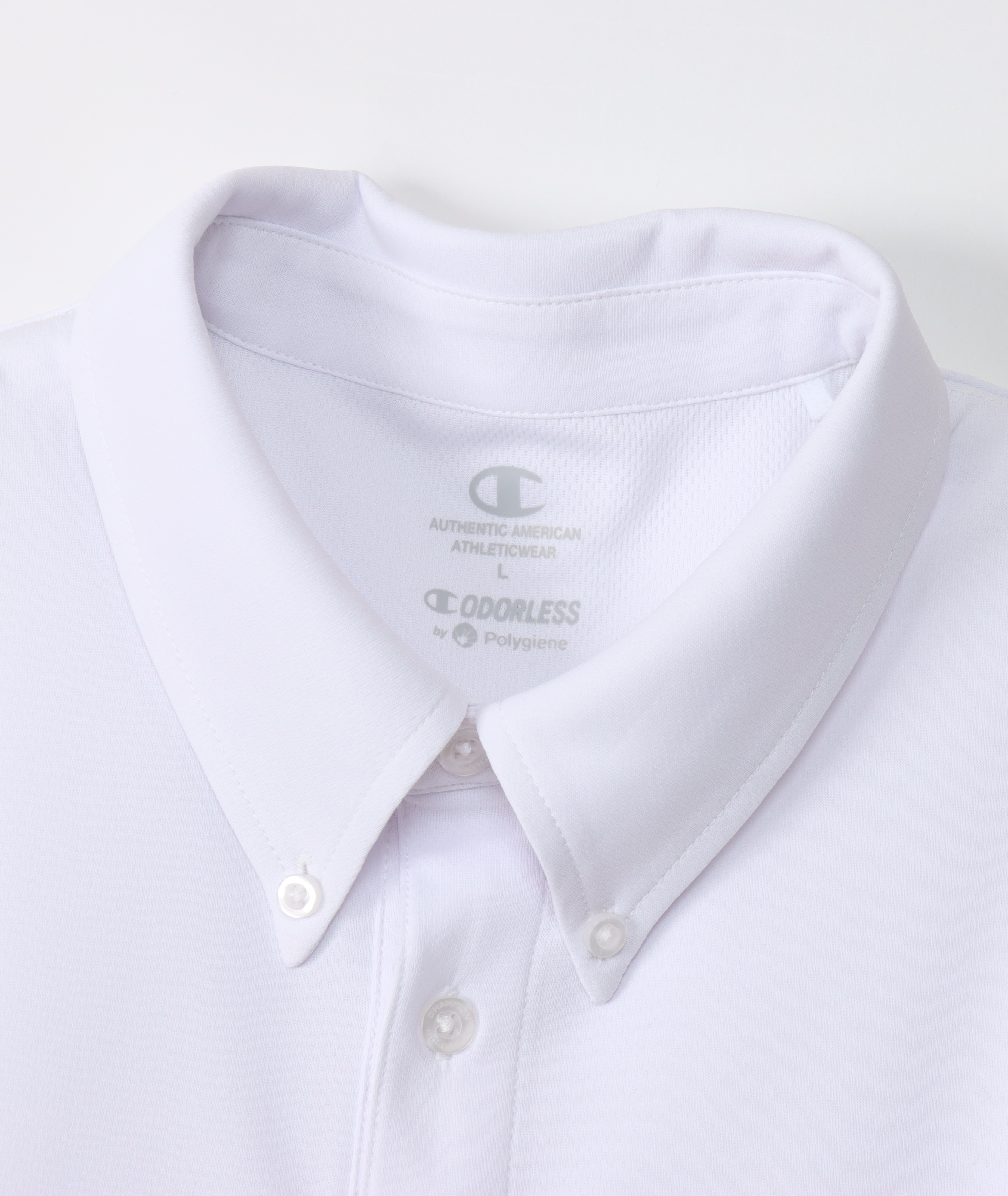 環境に配慮されたリサイクルポリエステル100%の吸汗速乾機能を備えた素材に、汗によるニオイの発生をアクティブに抑制し続ける抗菌・防臭機能「C ODORLESS® by Polygiene」加工を行った生地を使用したポロシャツです。左袖にCロゴワッペンを付けています。