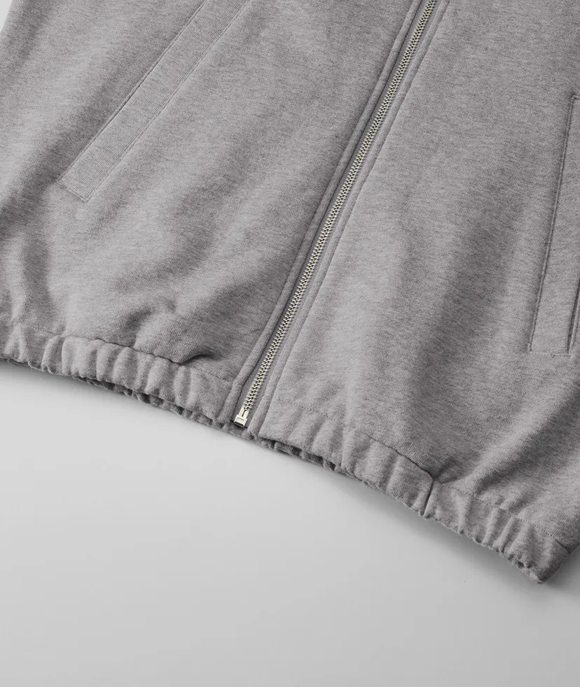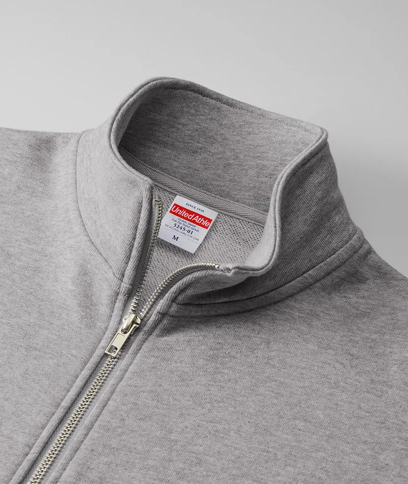 トラックジャケットのデザインをスウェット生地で仕立てることで、新たな魅力が加わった一着。スポーティになりすぎないので羽織りとしてデイリーに使いやすく、スタンドネック仕様ならではのクリーンな印象に仕上がりました。ジッパーを上まであげてレトロスポーティに着こなすのも◎。やや肩落ちしたシルエットと短めのレングスで今っぽさもばっちり押さえています。同生地のスウェットパンツ Style No.5217-01と上下セットアップのスタイリングもおすすめです。斜めにあつらえた左右のフロントポケットは、大きめで使い勝手抜群。10.0オンスの裏パイル生地は吸水性があり快適なので、着心地の良さも折り紙つきです。