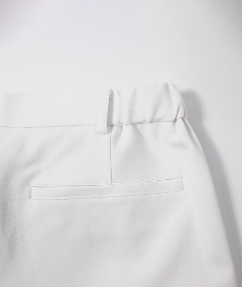 機能:透防止、制電、ストレッチ、制菌、工業洗濯対応 素材:ソフトラチネ 混率:ポリエステル100% 仕様:Dynamotionfit、後ろのみメッシュ裏地付(ホワイトのみ)、ウエスト脇ゴム、両脇ポケット、股下マチ付、右ヒップポケット
