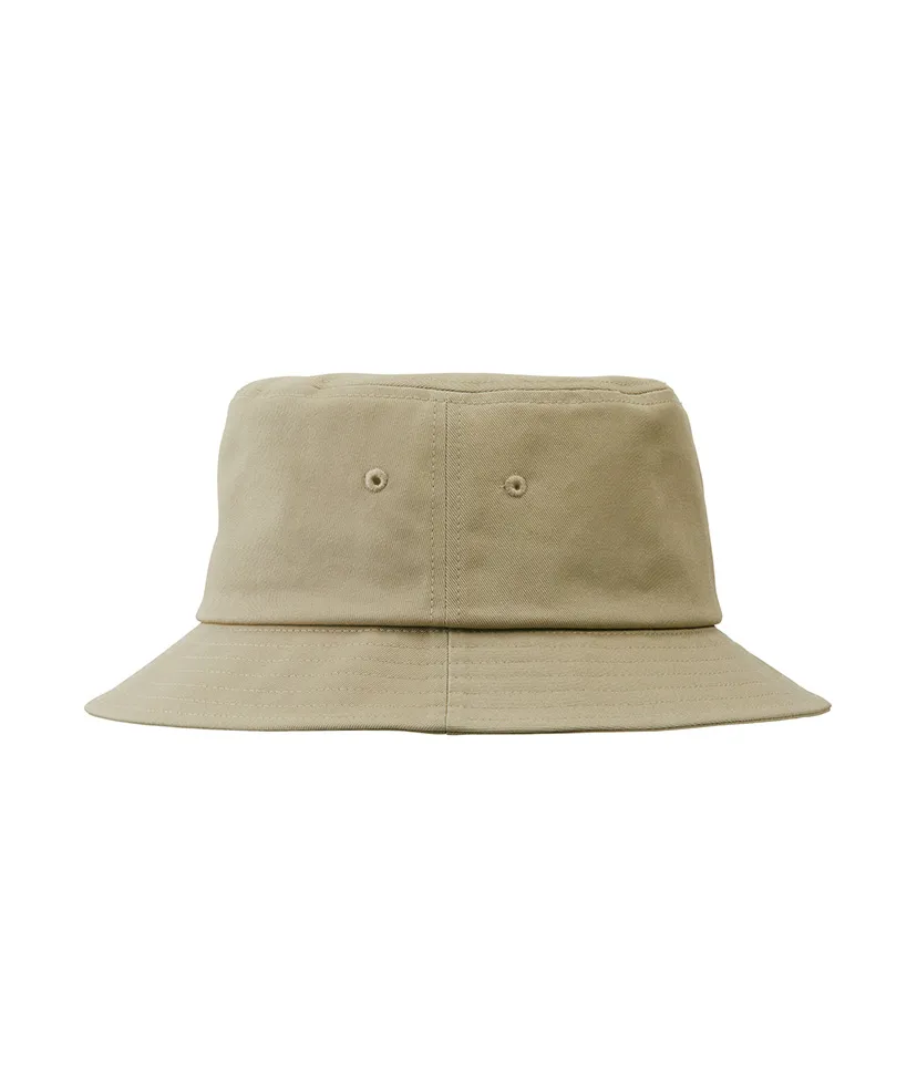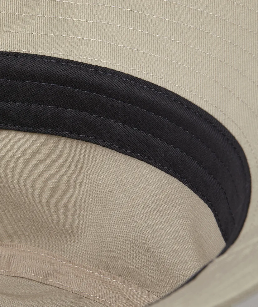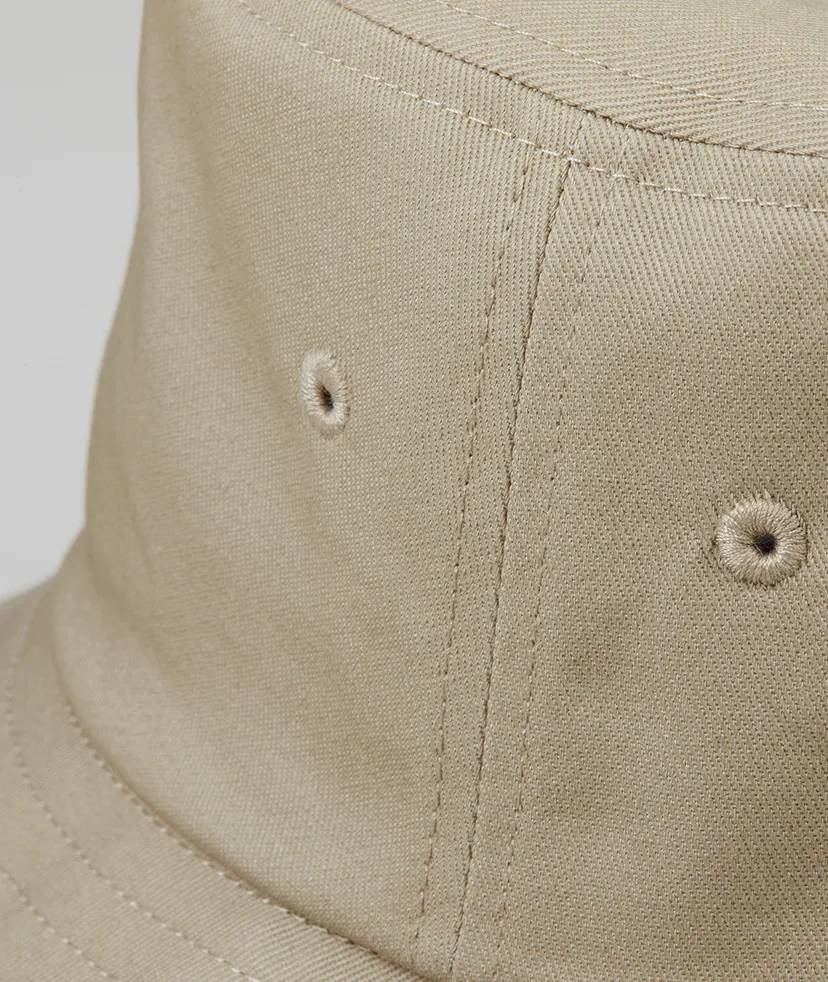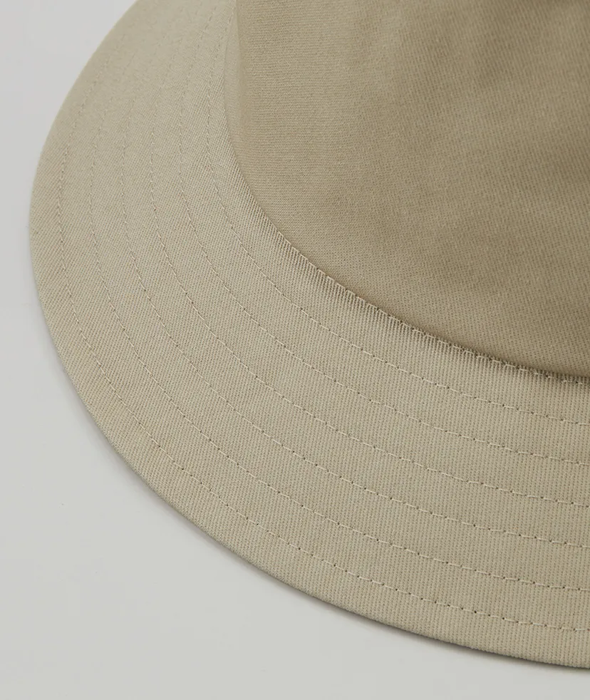 ほどよくハリと光沢のあるツイル生地を採用。耐久性もしっかりと担保しています。やや下斜め向きについたブリムは、小粋なシルエットを演出し、年代やジェンダー問わず被りやすい仕上がりに。日差しの遮蔽も計算された優れものです。また、ほどよい深さの円筒クラウンは、浅めにも深めにも被ることができるため、その日の気分に合わせて楽しむことができます。さらに、クラウンのサイドには菊穴を配すことで熱や蒸れを逃がすコンフォート設計。どんなジャンルにもしっかりとはまる定番プロダクトです。