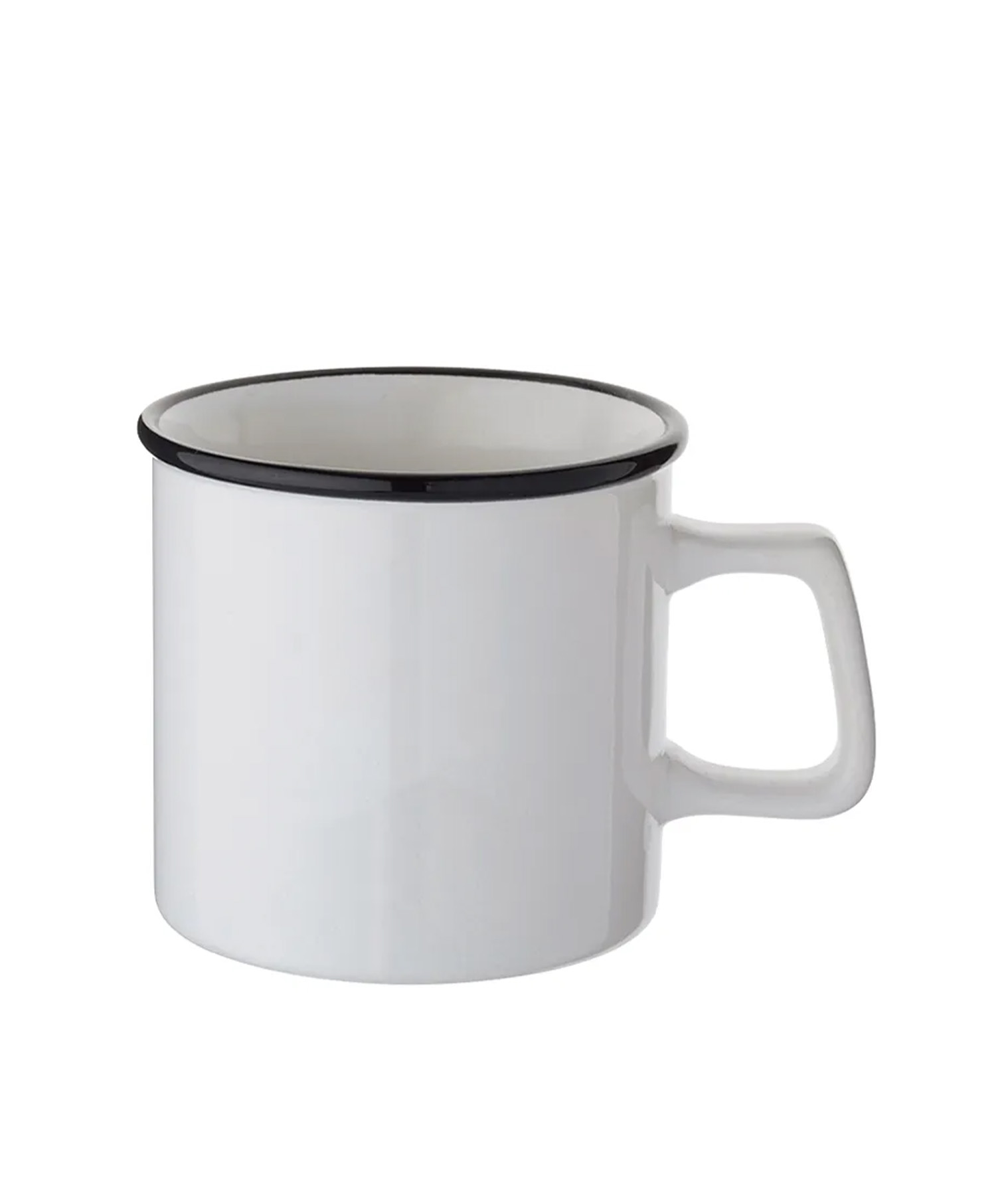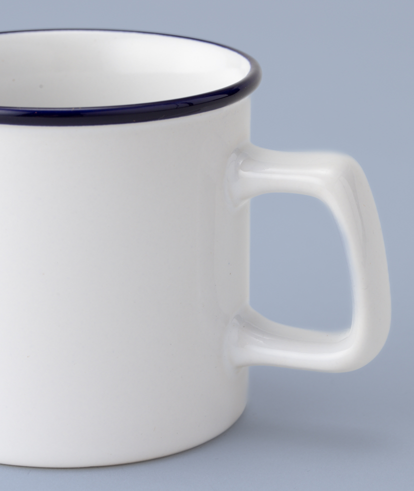 【1個からOK】ホーロー製ような口元がふっくらとしている陶器マグカップ!優しげなデザインにカラー展開も豊富で、口元の差し色がポイントになる5色ご用意しております。色違いで揃えても愛らしいデザインです。
