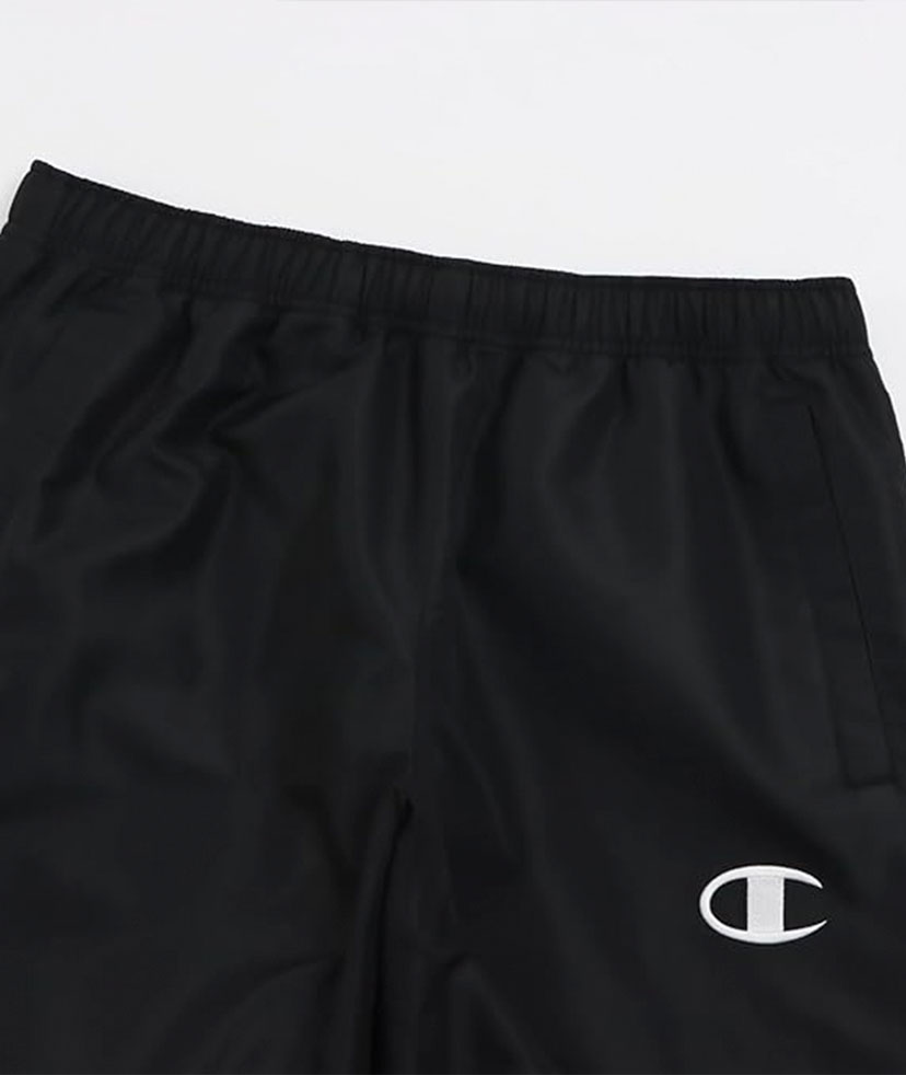 裏地にトリコット起毛素材を使用し、保温性を高めたウィンドブレーカーパンツ。 表地に撥水加工を行っているので、ちょっとした雨天でも着用可能です。 左前腿にはロゴ刺繍、左サイドには「AUTHENTIC AMERICAN ATHLETICWEARのプリント入り。 夜間での視認性を向上するため、右ふくらはぎのChampion ロゴに反射効果のあるリフレクタープリントを採用しています。 裾口に通したスピンドルで、丈やシルエットの調節が可能。 ウィンドブレーカージャケット(C3-ASC17)とのセットアップでの着用もオススメです。
