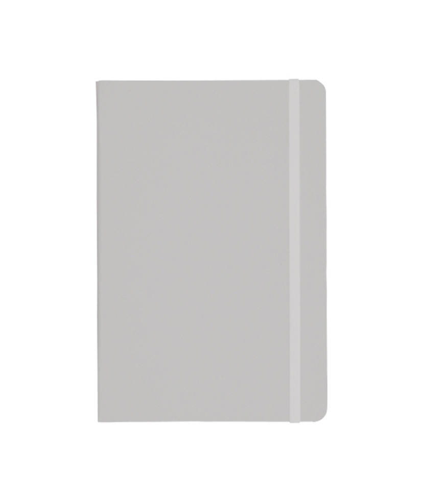 使いやすいA5サイズのハードカバーノートです。 表紙のハードカバー素材にはPUを使用し高級感のある仕上がりに、 またノートの罫線の色味や幅にもこだわっており、長時間使用しても目の疲れにくい仕様です。 ホワイト、ブラック、ネイビーの定番カラーに加えて スモークブルー、グレーのビジネスシーンにもぴったりな落ち着きのある5色展開です。 名入れがよく映える落ち着いた色味は、様々な案件に柔軟に対応できるため 業界を問わずオリジナルノベルティの作成に人気のあるシリーズです。
