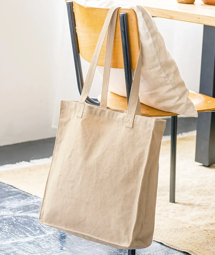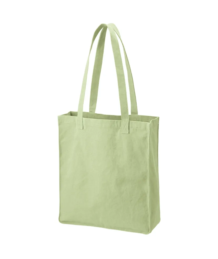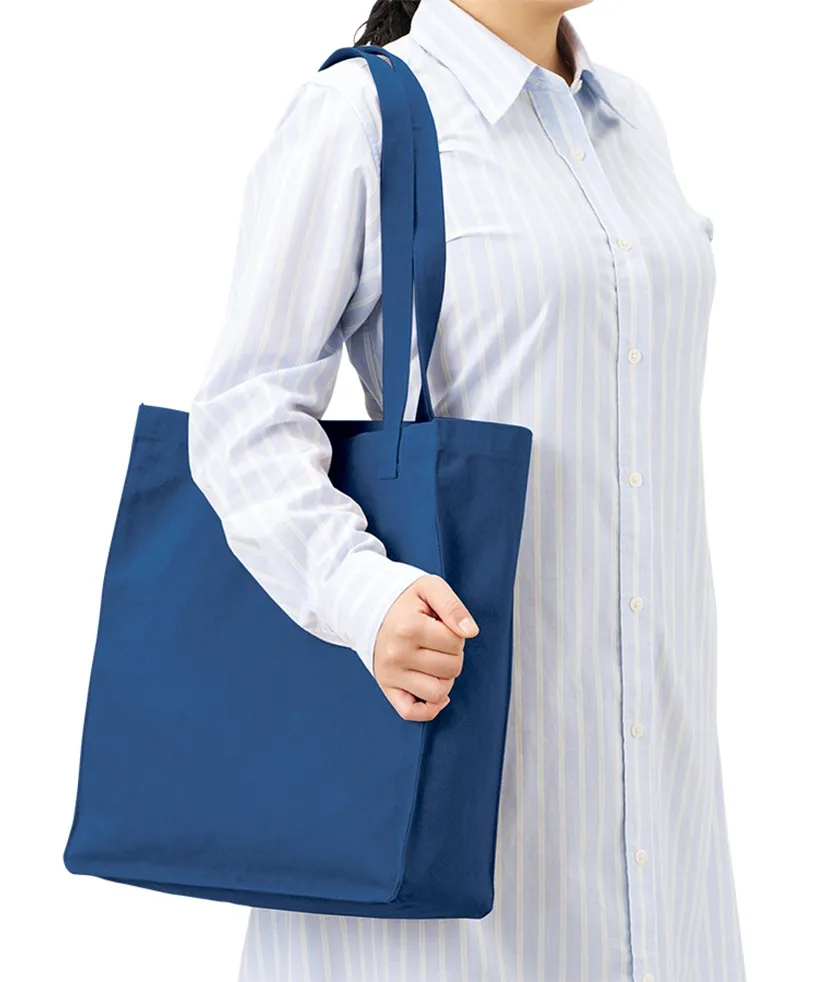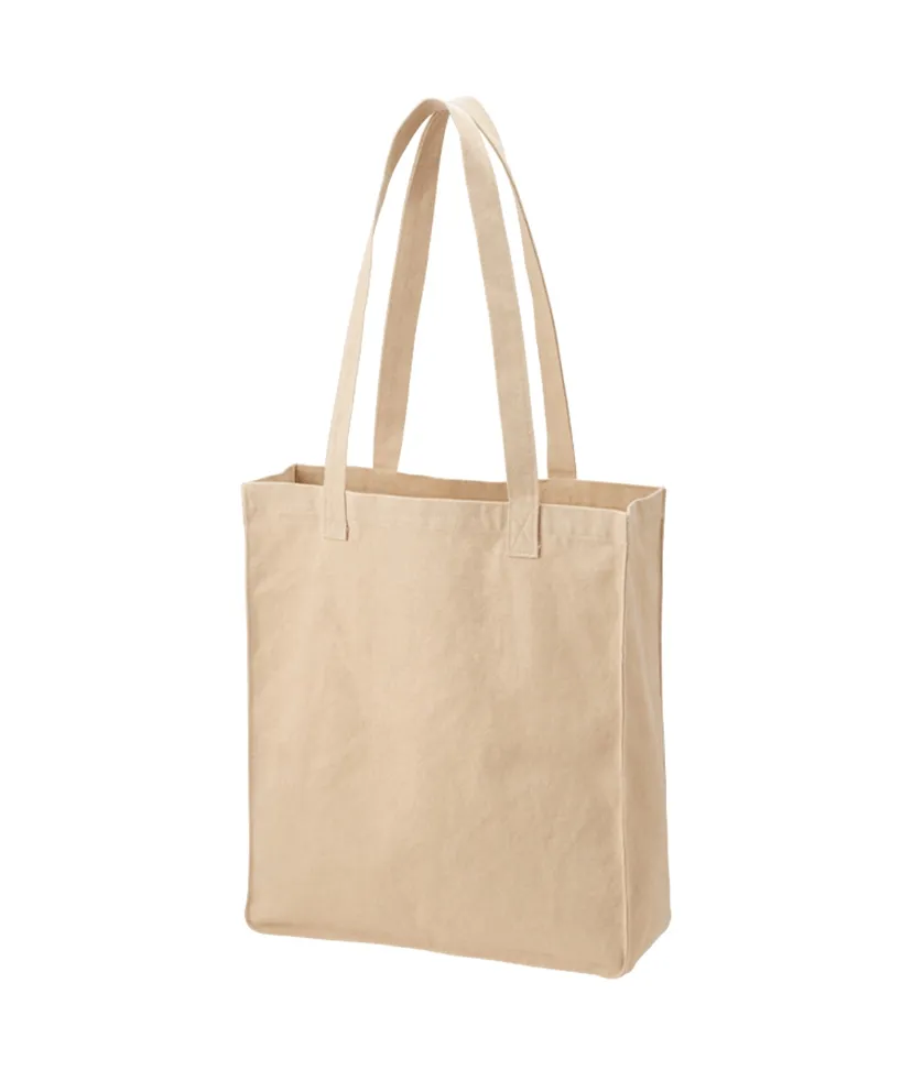 スクエア型がポイントのウォッシュキャンバストートバッグです。 底の角には丸みを持たせているため、素材の風合いにも合う柔らかな印象です。 取っ手部分はアウトハンドルになっており、シンプルながらも個性を出してくれます。 チャコールブラックやオリーブカラーなど、ナチュラルでトレンド感のあるカラーラインナップで展開しています。 シルク単色印刷から熱転写でフルカラーにも対応しているため、 バッグのボディカラーを生かした高級ノベルティや物販品としてもおすすめです。