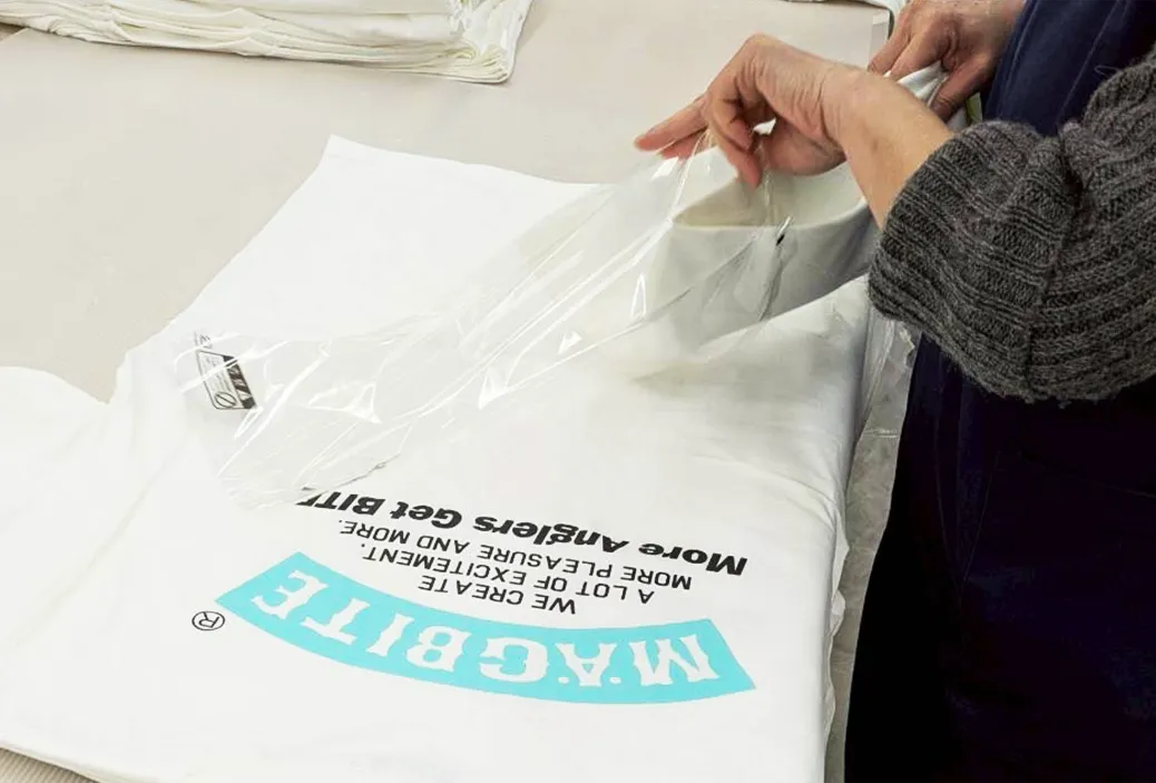 EC用途や販売時に平置きの場合は個別包装をしておくことで商品の劣化を防ぐことができてさらにサイズシール・JANシールを貼っておくと在庫の管理がしやすくなりますのでおすすめです。