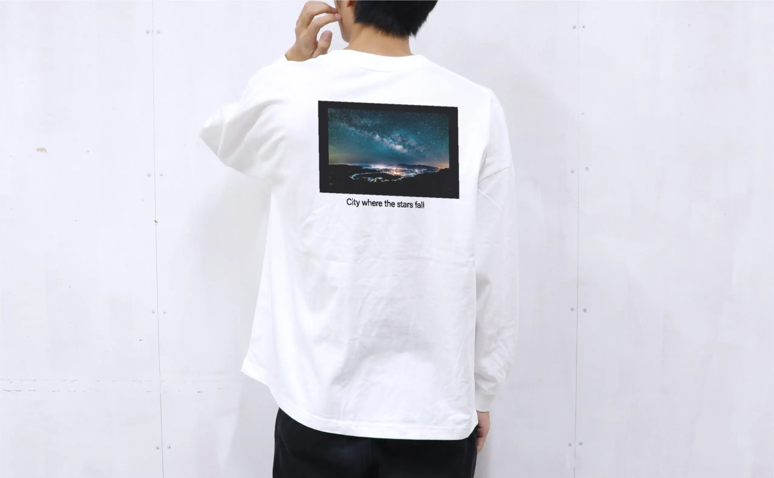 ロンTが半袖Tシャツより優れているところは、袖にもめいいっぱい、自由にデザインがプリントできるところですね。