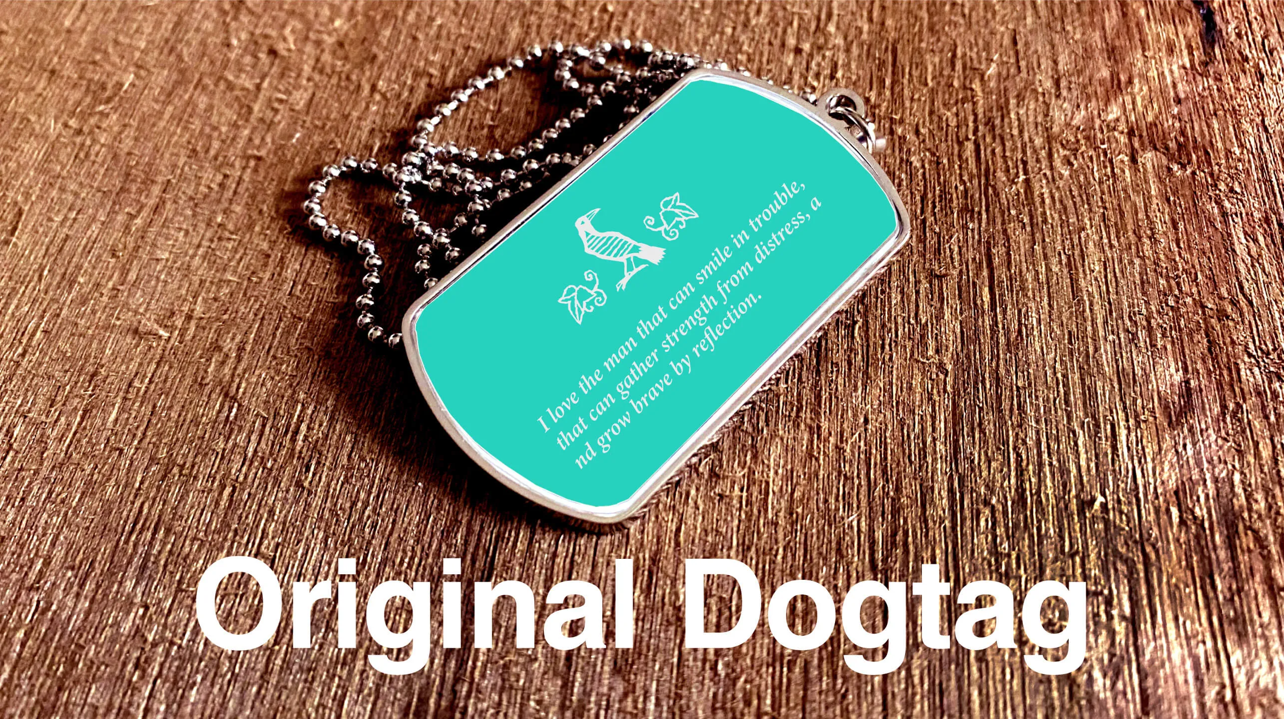 ドッグタグの形状はそのまま。金属プレートにUVプリンターでアクリル板にプリントしたデザインを貼り付ける簡単なアクセサリーです。