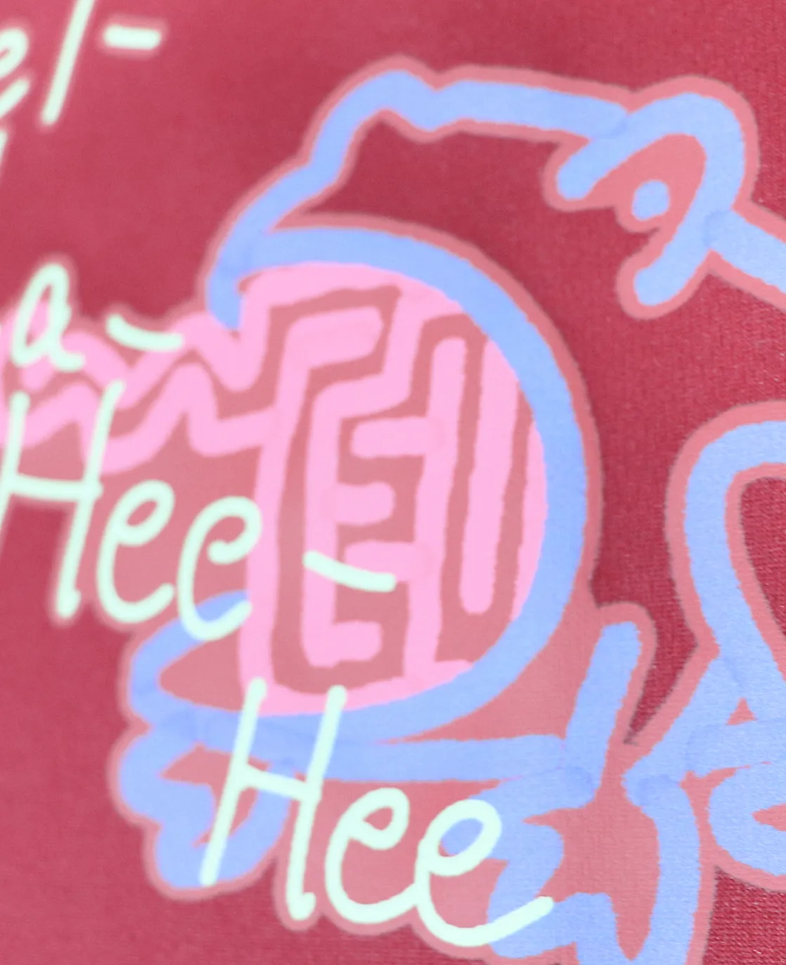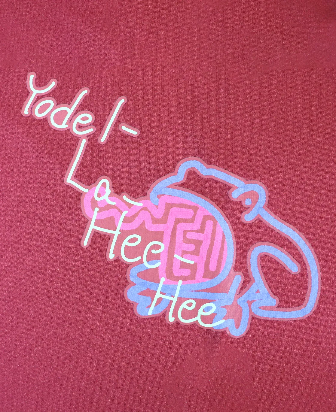 ファンシーなデザインと鮮やかな赤色のTシャツがオシャレな一枚に仕上がりました。