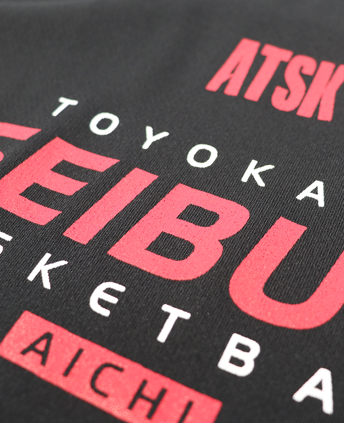 黒いTシャツに赤白のインクでチーム名を入れることで、強豪チームを印象付けます!