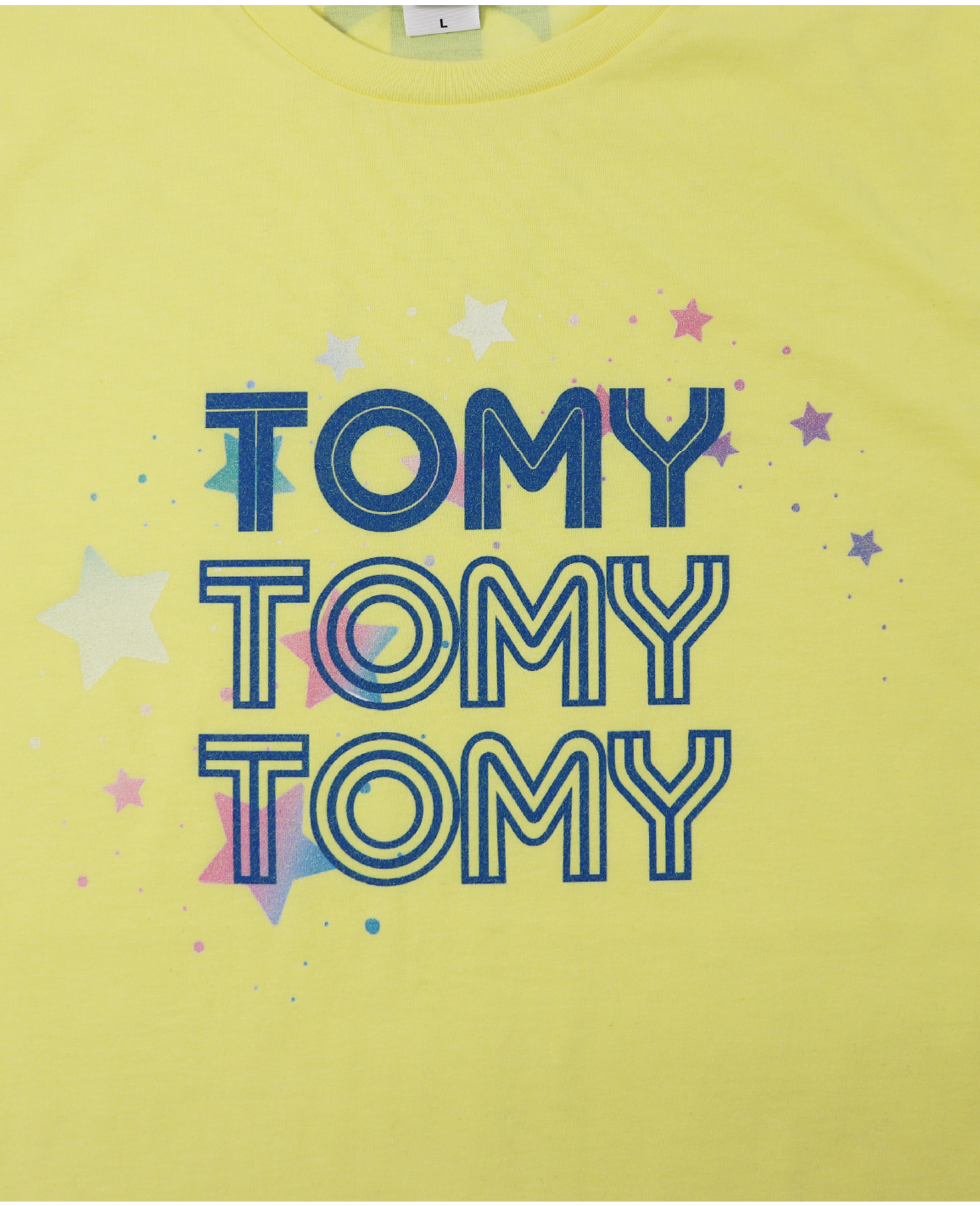爽やかなライトイエローの生地にブルーを基調にしたデザインが相性が良く、夏らしい1枚に仕上がりました。