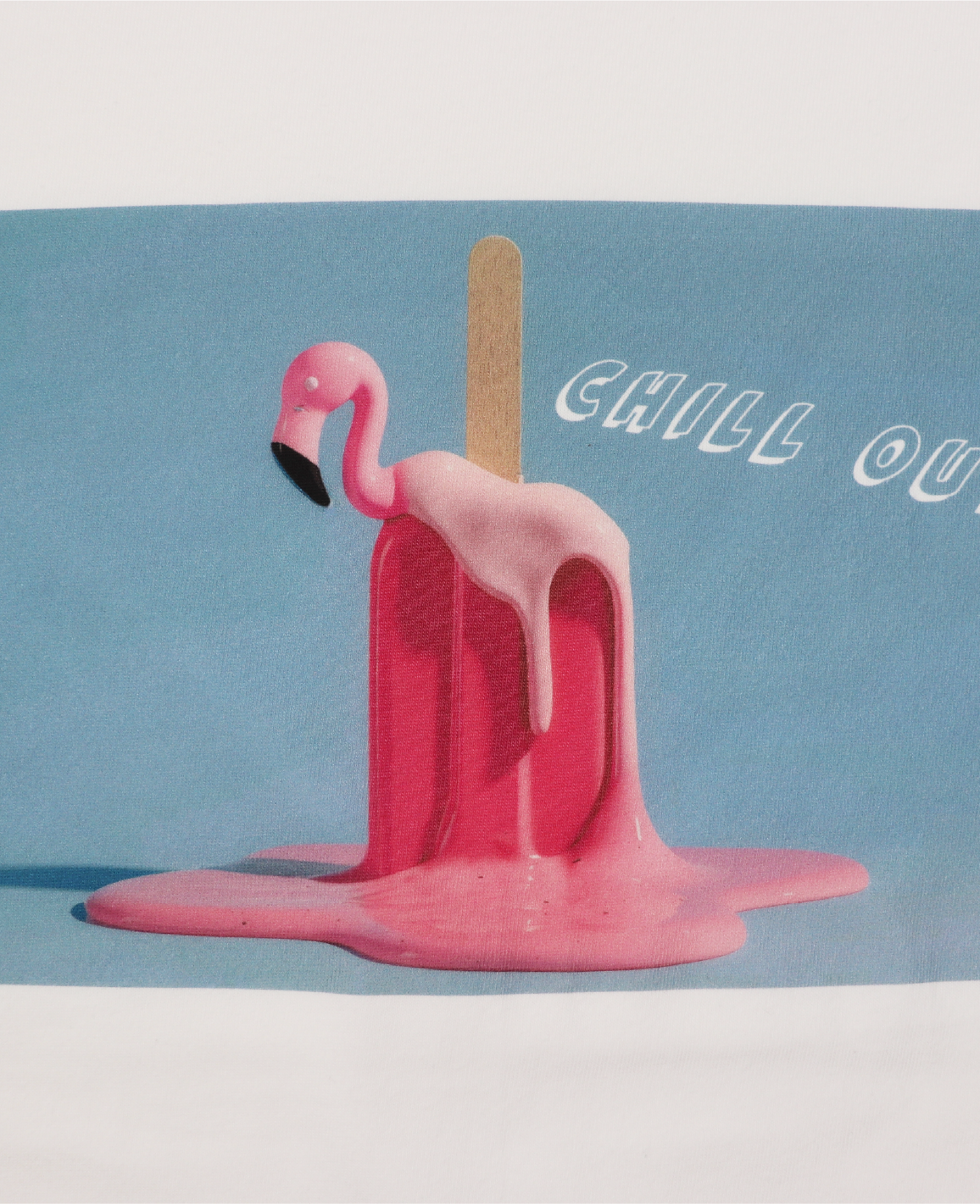 フラミンゴとアイスが溶け合った魅力的なデザインです。