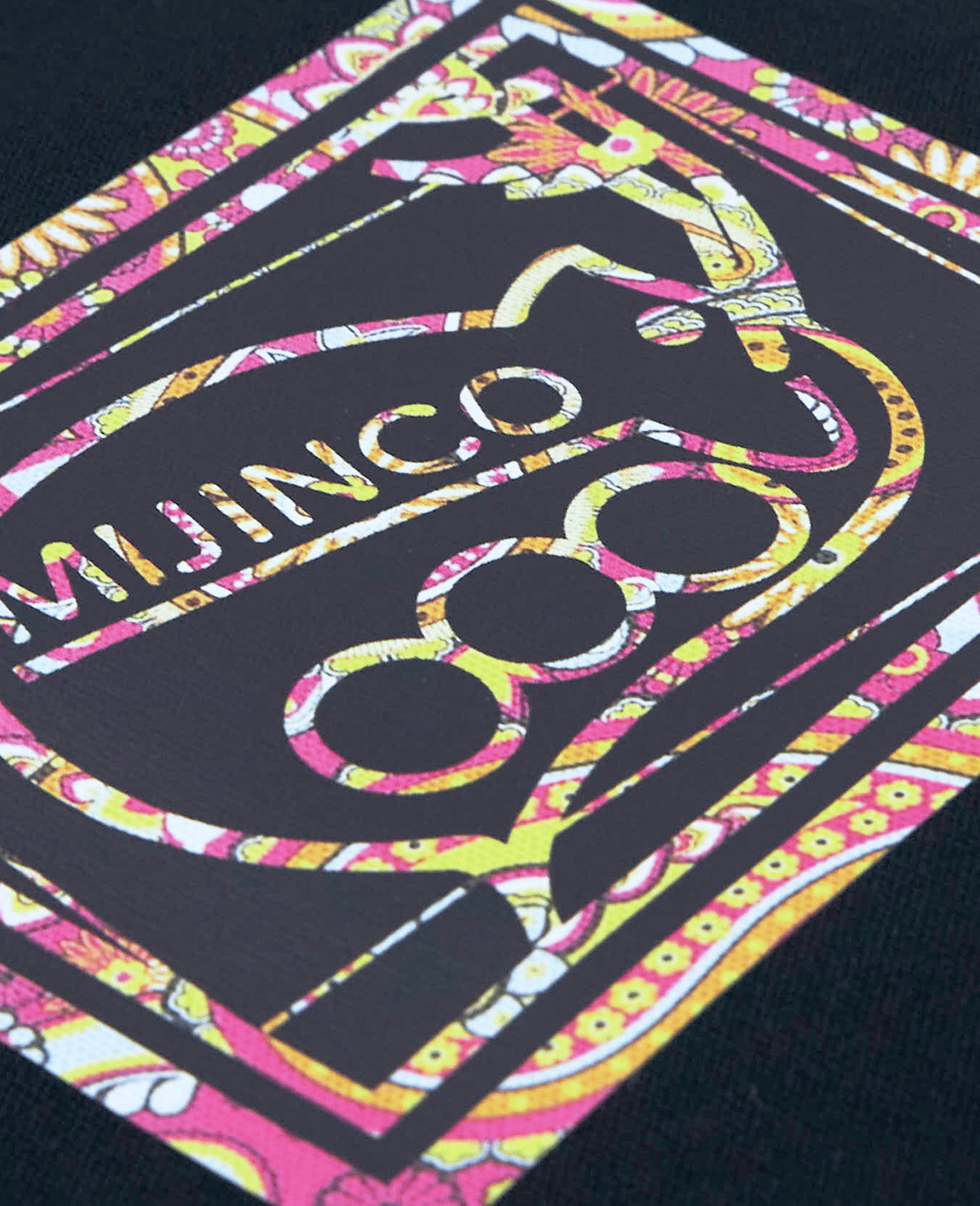 黒いキャンバス時に鮮やかなカラーが映えるトートバッグをご作成いただきました。ミジンコをあしらったロゴの背景におしゃれなペイズリー柄が透かしになっている、とても手の込んだデザインです。