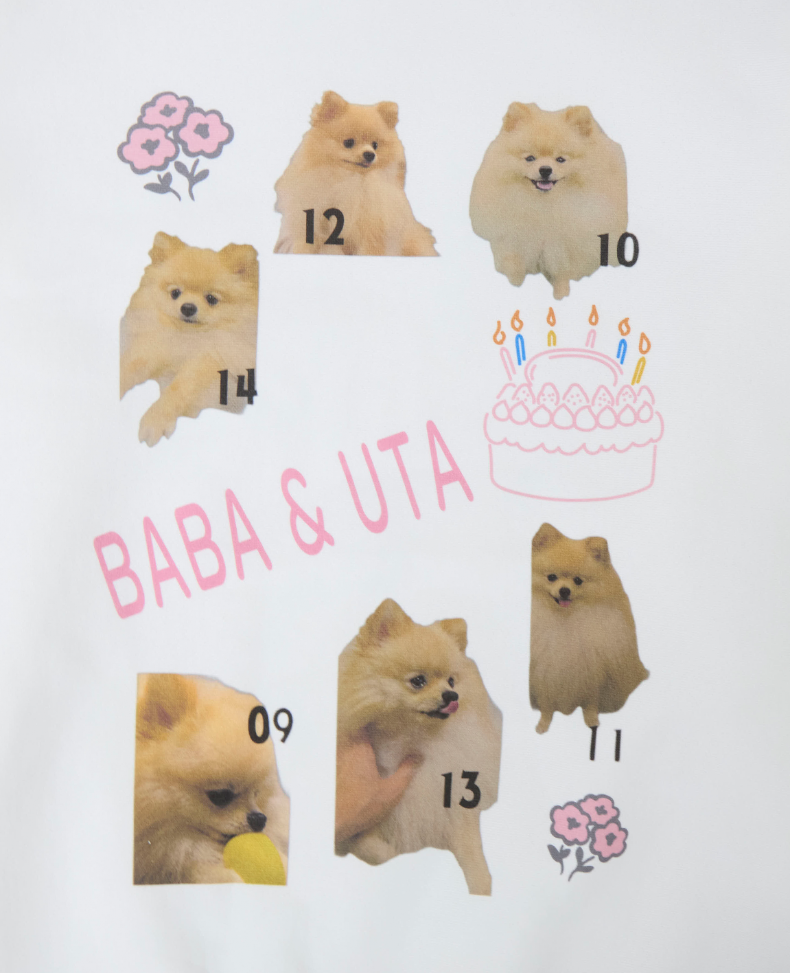 スウェットトレーナーにインクジェットプリントで可愛いワンちゃんの写真をたくさんプリントしていただきました。