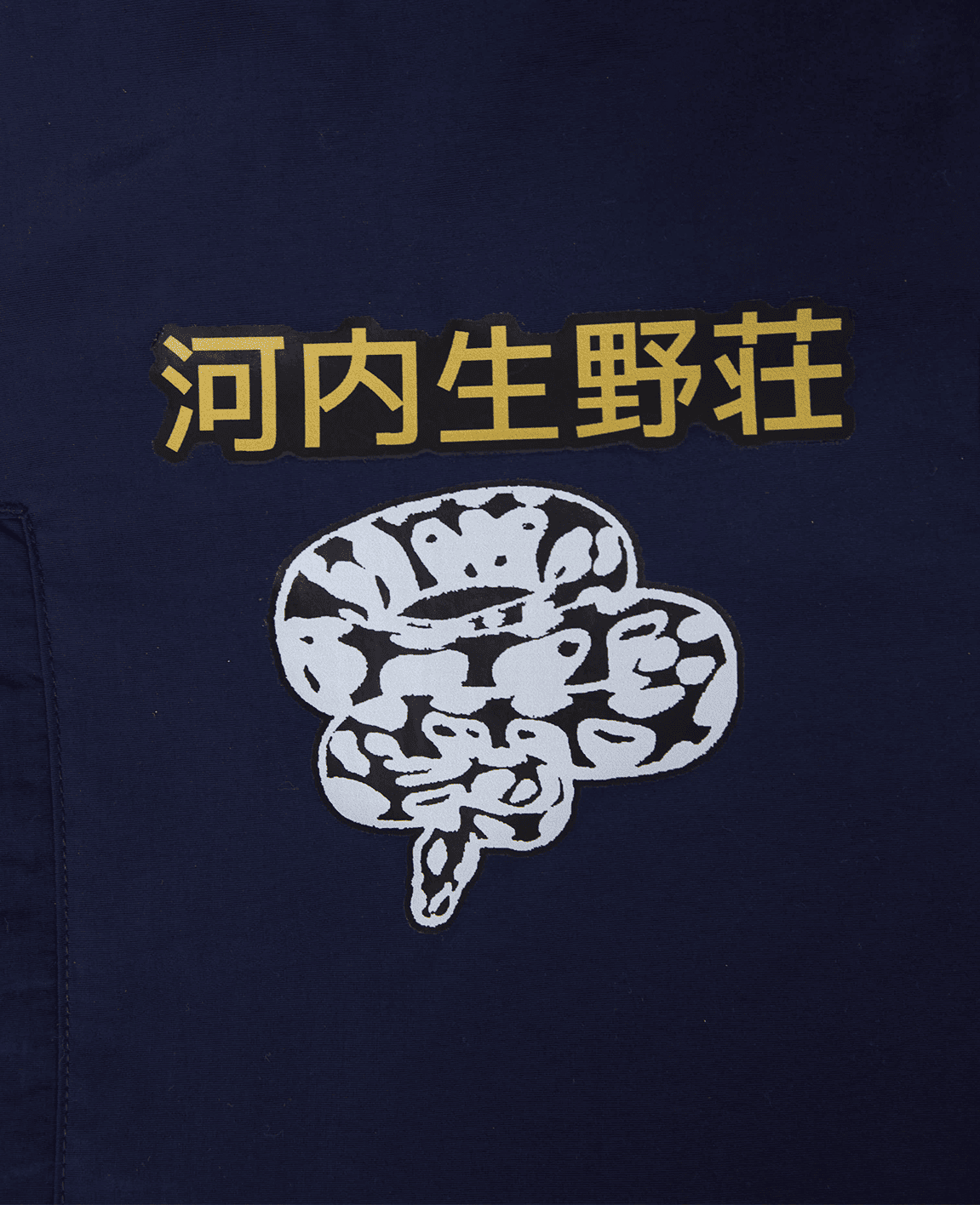 制服用のアウターの左胸にワンポイントプリントのご注文を頂きました。複雑な模様が印象的なヘビのマークは、隙間部分を埋めて圧着の強度を確保しています。