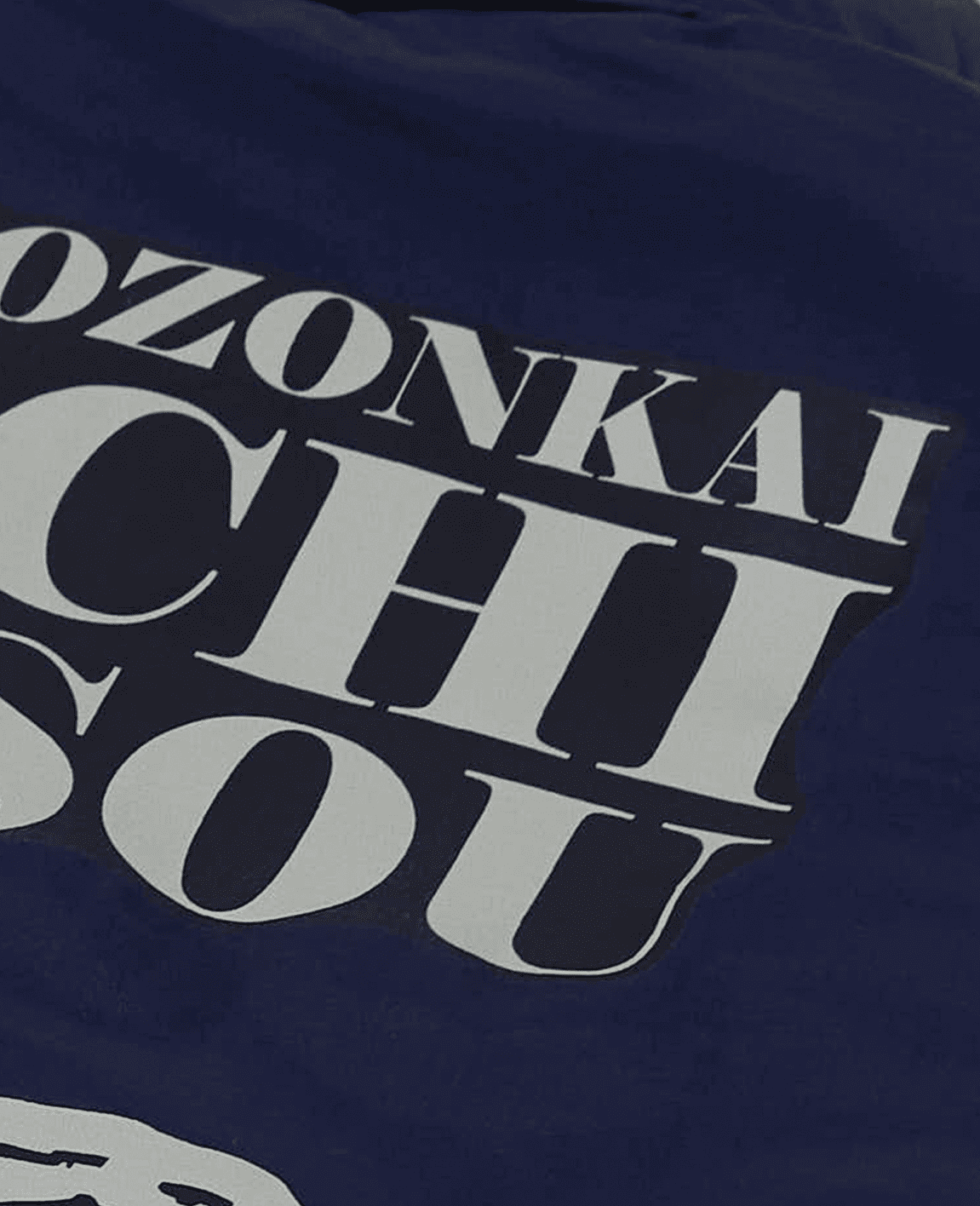 文字部分には太い線と細い線のコントラストが非常に強いフォントをお選びいただきましたので、プリントの周りに生地に近い色のフチをつけることで補強しています。