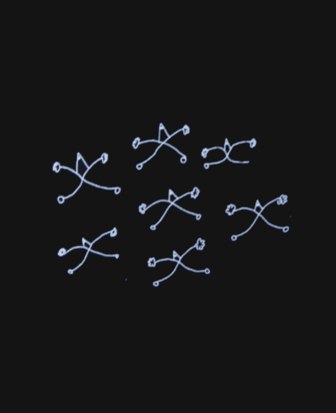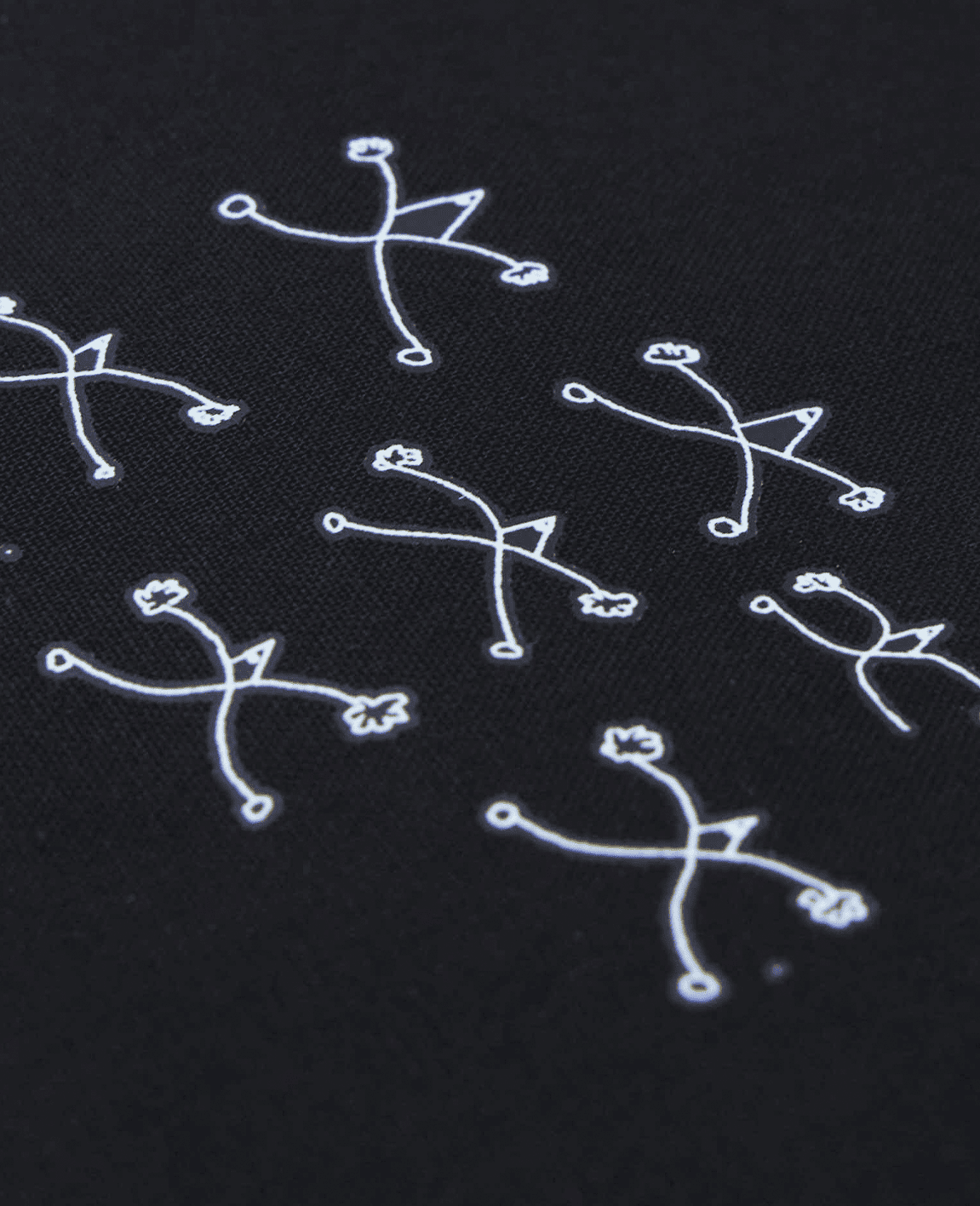ブラックのボディ中央に、繊細な線で描かれたモチーフをコンパクトに配置した、ミニマルで洗練されたデザインです。