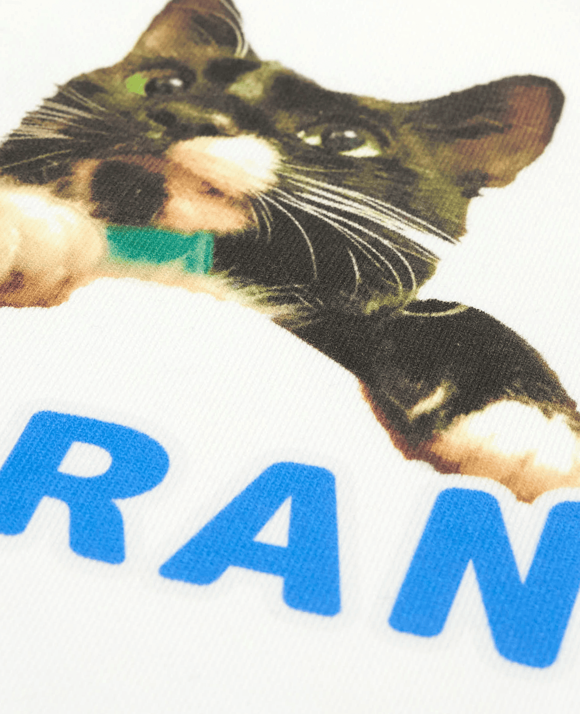 シロの生地に猫ちゃんと青色の文字が映えておしゃれに仕上がりました。