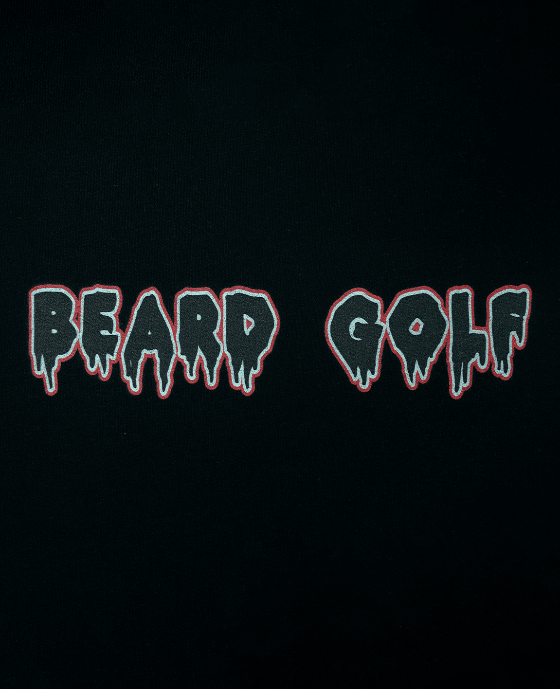 フロントには「BEARD GOLF」のロゴを中央に配置し、滴るようなデザインのフォントでインパクトのある仕上がりになっています。ブラックのボディにレッド×ホワイトの配色が映え、シンプルながらもしっかりと存在感を感じられるデザインです。インクジェットプリントでは細かい部分の加工も綺麗に再現できるのが魅力の1つです。