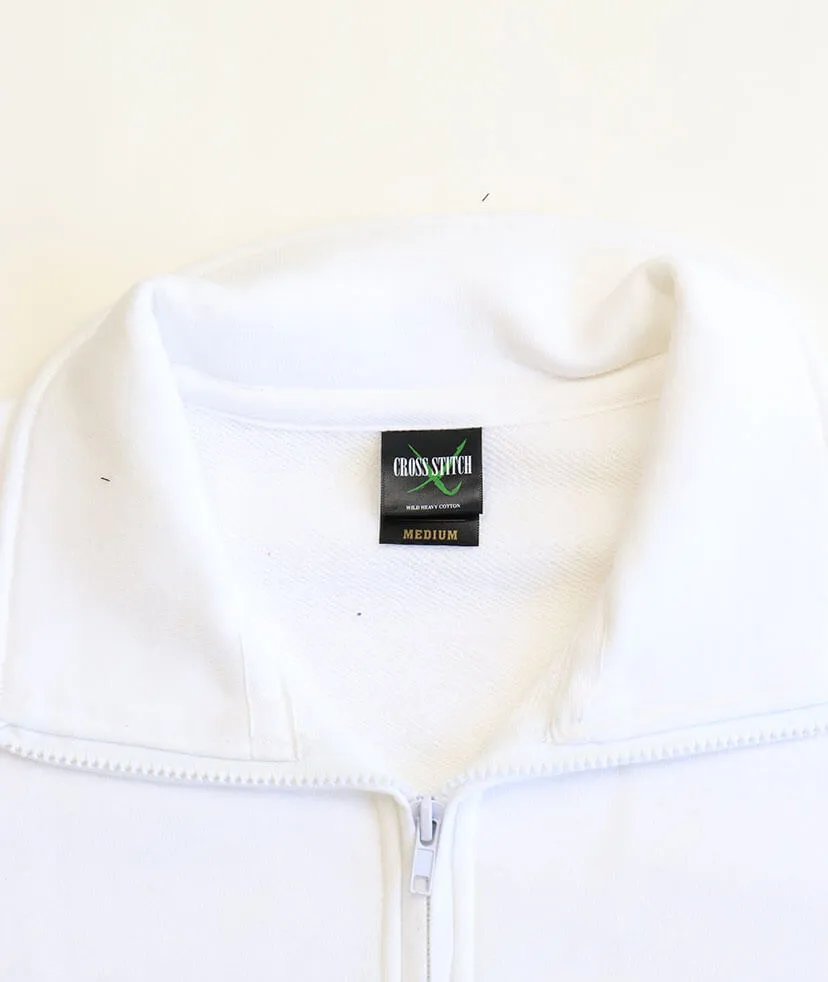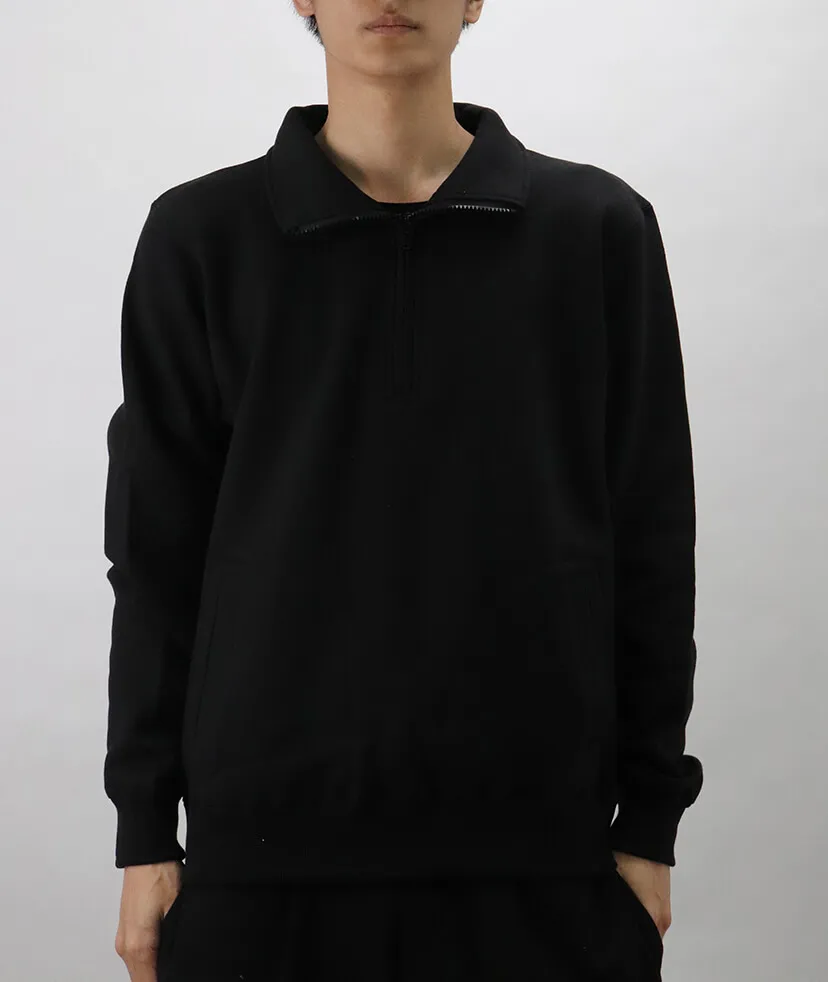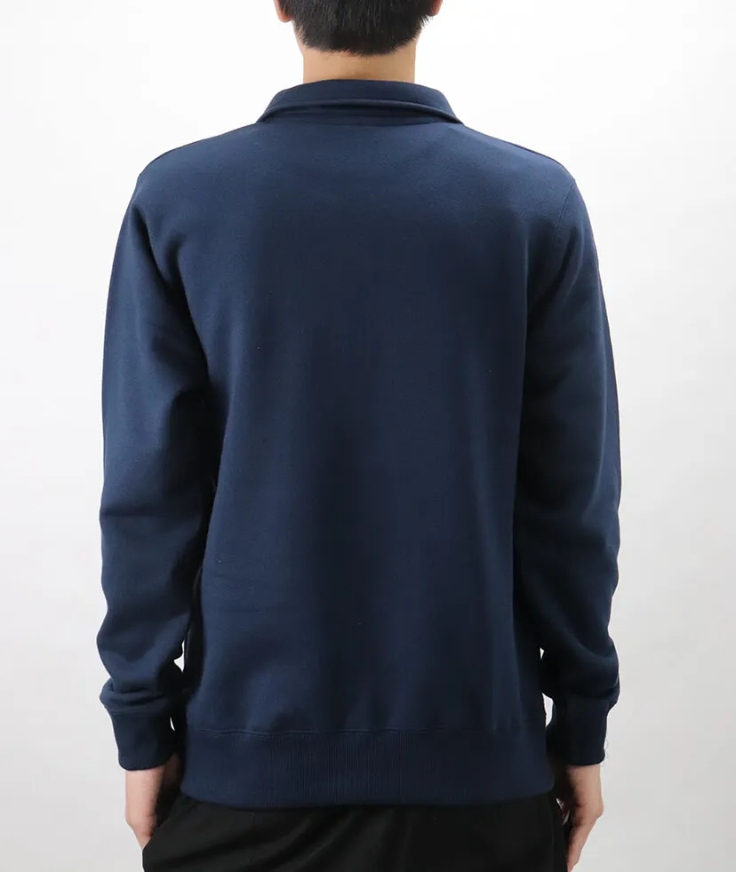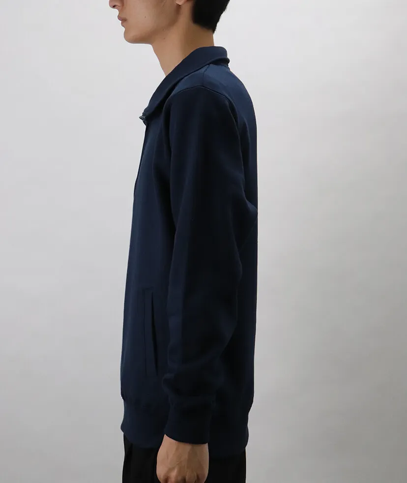 パイルのスウェット生地を使用した珍しいトラックジャケットです。 胸までのハーフジップタイプで、衿は二重生地なのでしっかり立ちます。 4色のベーシックなカラー展開でオリジナルウェア作成にバリエーションをもたらしてくれます。