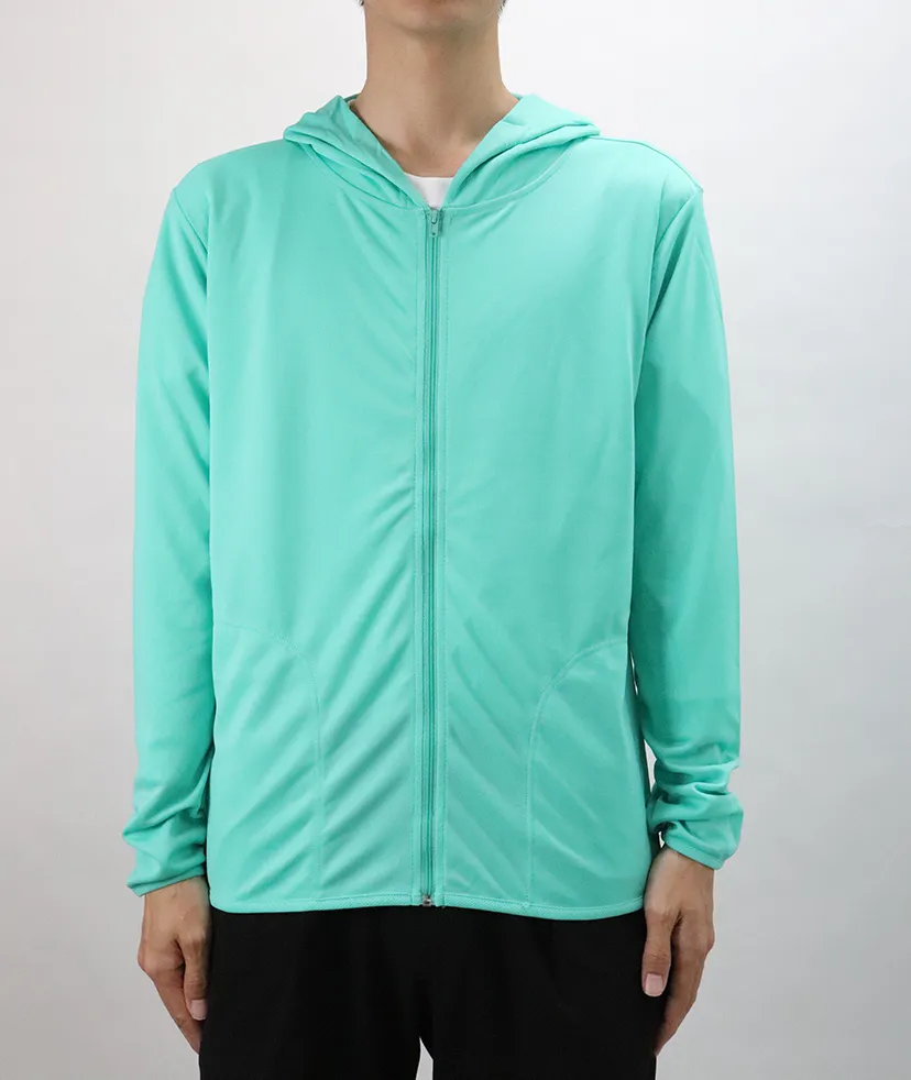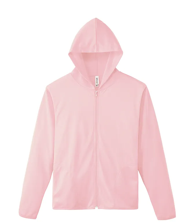 吸汗・速乾性に優れたドライTシャツ生地のジップパーカー。フード付きで屋外での紫外線対策もばっちり、薄手で持ち運びにも便利ですので、ランニング時の重ね着やアップ着としておすすめです。 紫外線が気になるけど暑いという夏のチームウェアに特に人気です。