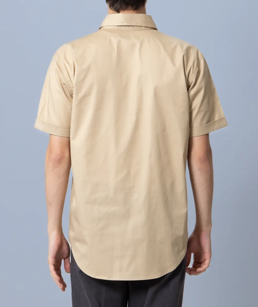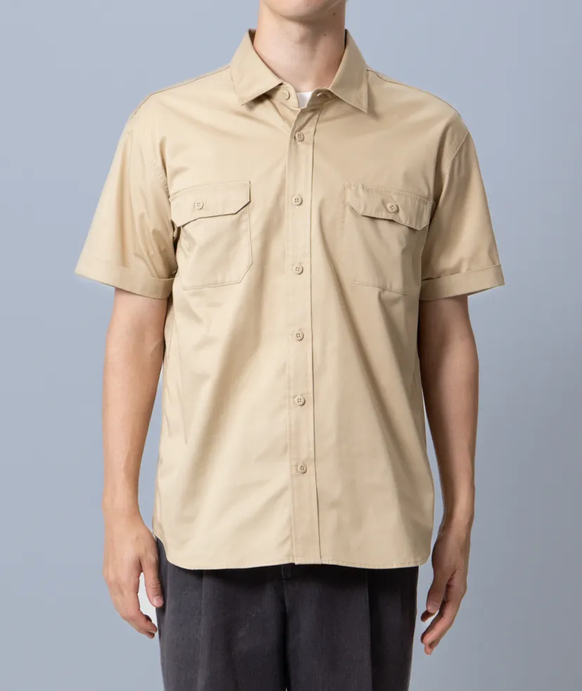 2本針のチェーンステッチ、両胸のペン差し付きフラップポケットなど、シンプルでありながら、細部にあしらわれた工夫とデイリーユースに最適な性能が特徴。 現場でも事務でも通用する機能性とすっきりしたデザインでワーク関係の人気を持った1枚です。