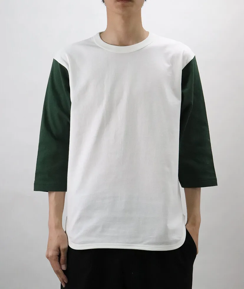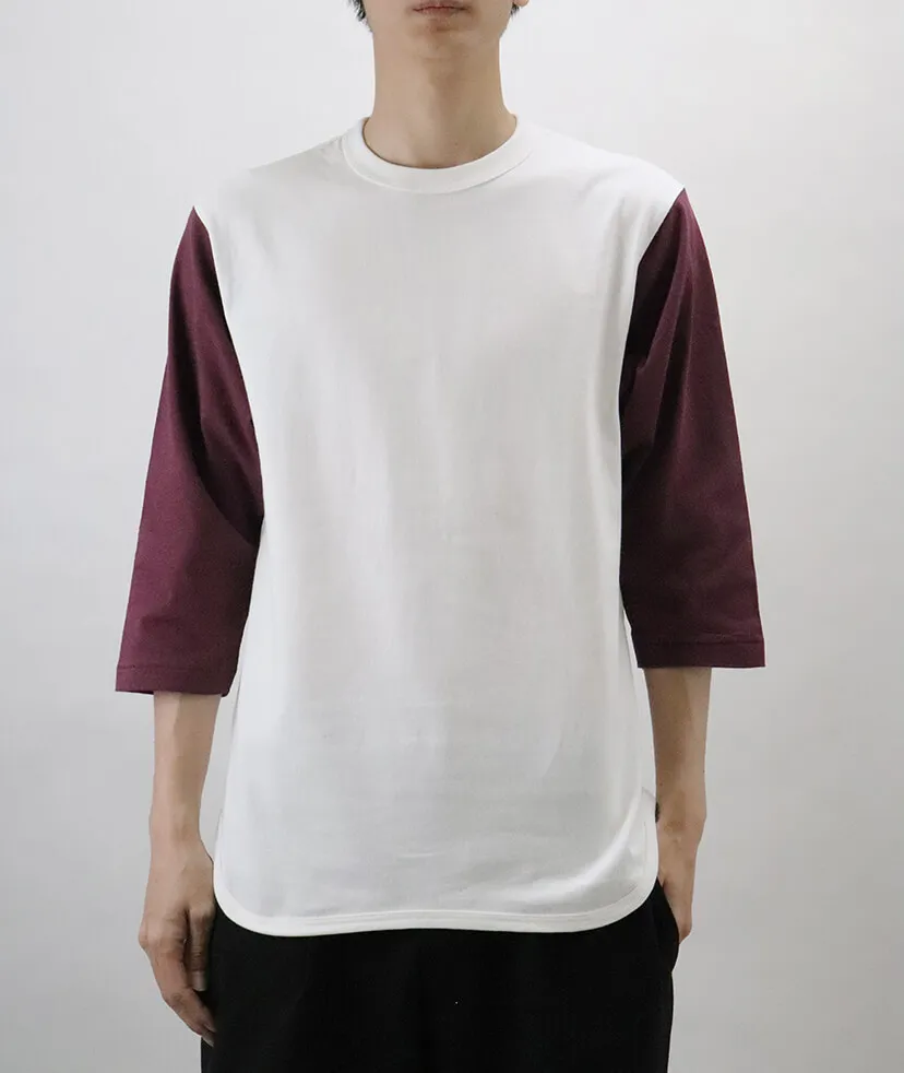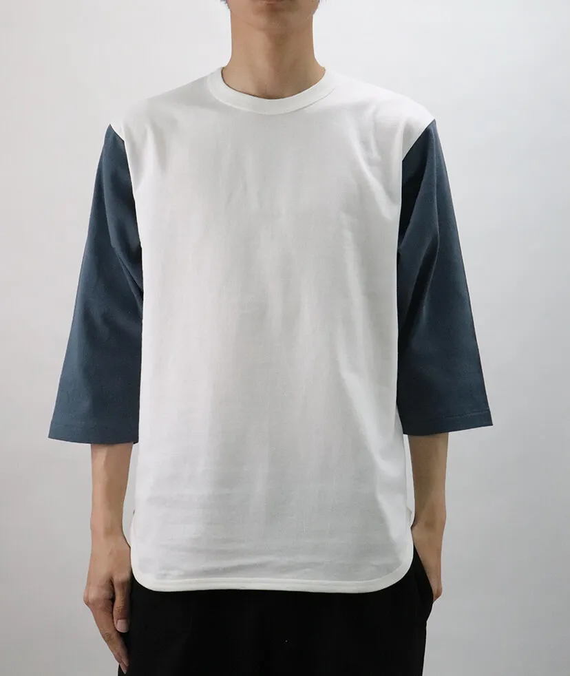3/4スリーブのロングTシャツ。オープンエンドのラフな印象と個性的なスタイルで他にはない独特のシルエットをもったアイテムです。 肩がすこしドロップダウンした形になっているので他の切り返しと差のある1枚になっています。