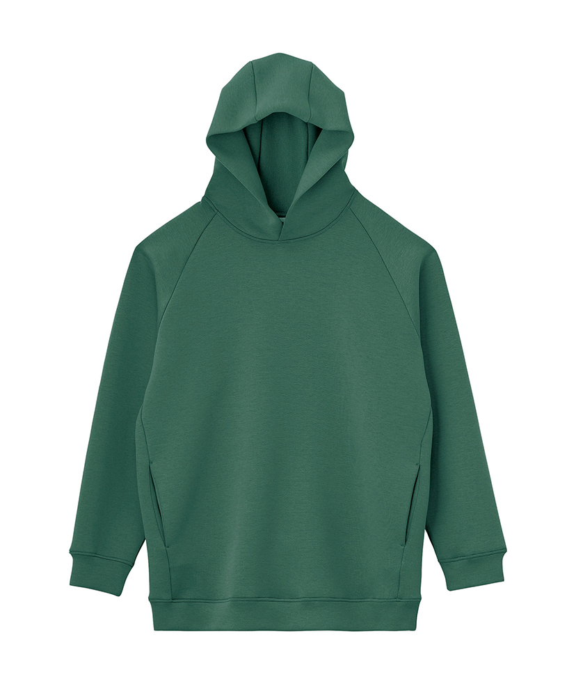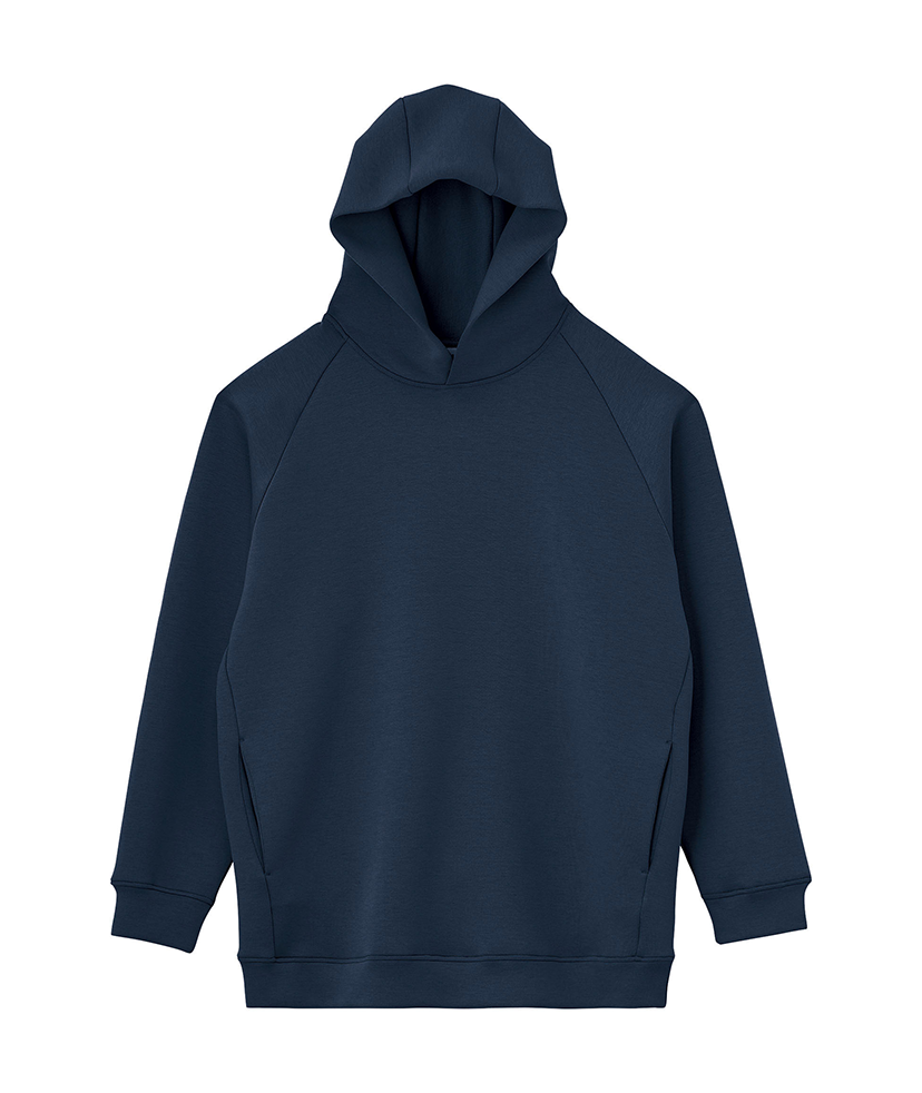 「暖かく快適な着心地のダンボールニット!」 DRY Stretch 生地の間に空気をためることが可能なダンボールニットは、外気の影響を低減する保温性に優れた素材。 斜め切り替えラインが特徴のポケットは物の出し入れがしやすく、スッキリとしたデザイン。 ポケットはメッシュ素材を使用し、蒸れにくさを実現。 肩まわりの自由度が高いラグランスリーブ仕様。 抗菌防臭加工「ポリジン・バイオスタティック」を付与 立体的なフードが魅力のプルオーバーパーカ。構築的なフォルムで360度かっこよく。 わ裁ち二重仕立てで立ち上がりの良いフード構造